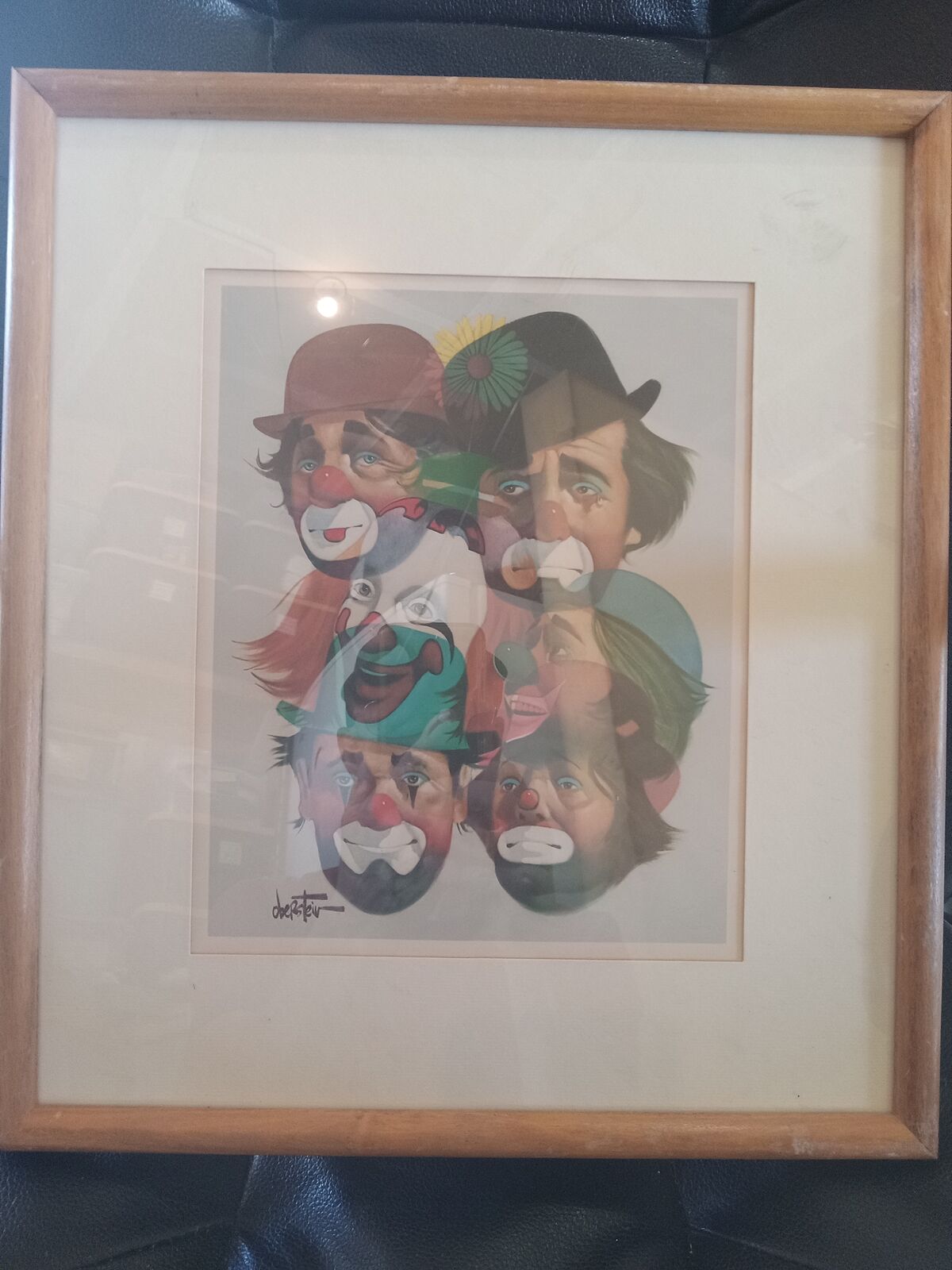 REDUCED. Oberstein clown lithographs, lot of 3, excellent condition. Sold individually or as a lot. Print #s: 6594, 6595 and 8246. I could not find solid prices for these but I will start them at what I think is a high price, hopefiully close yo fair prices, and if anyone can direct me to good information, I will drop the prices if need be. Asking $110 for all 3, $40 for one.