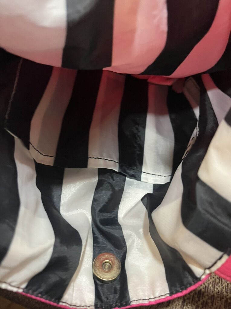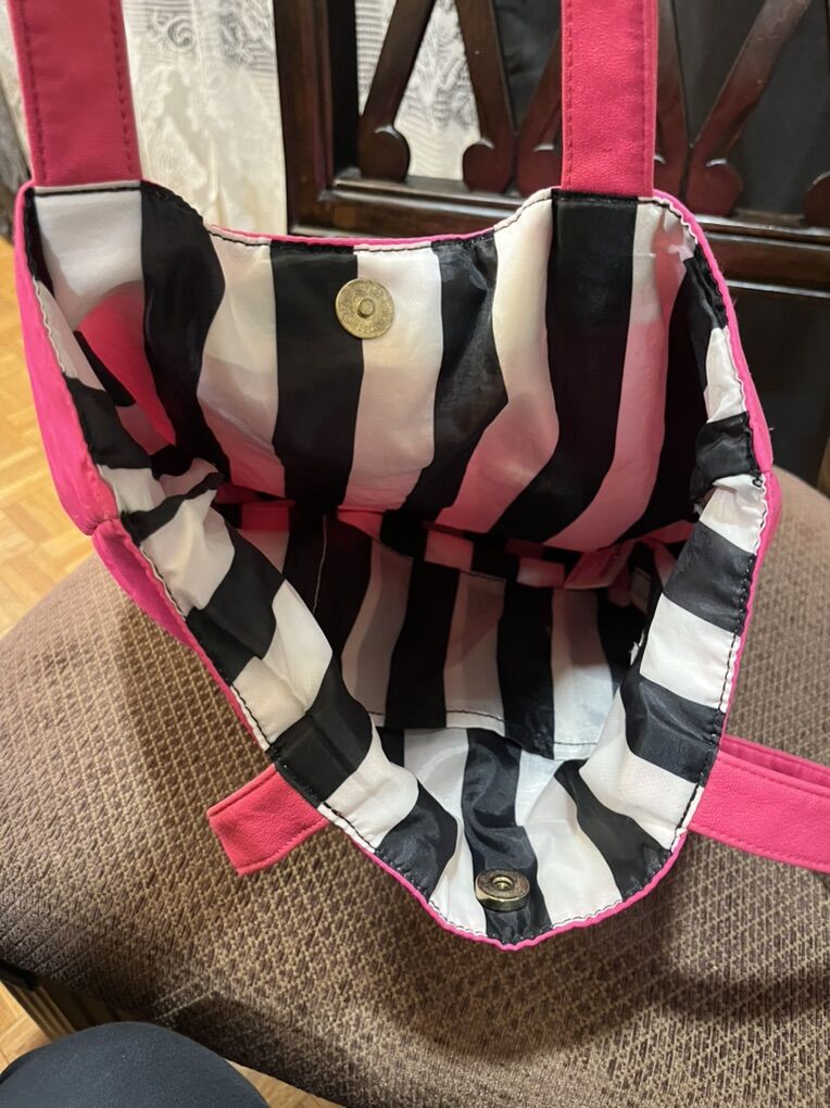 VenmoNylon exterior lining and polyester lining inside. Good shape pink in color