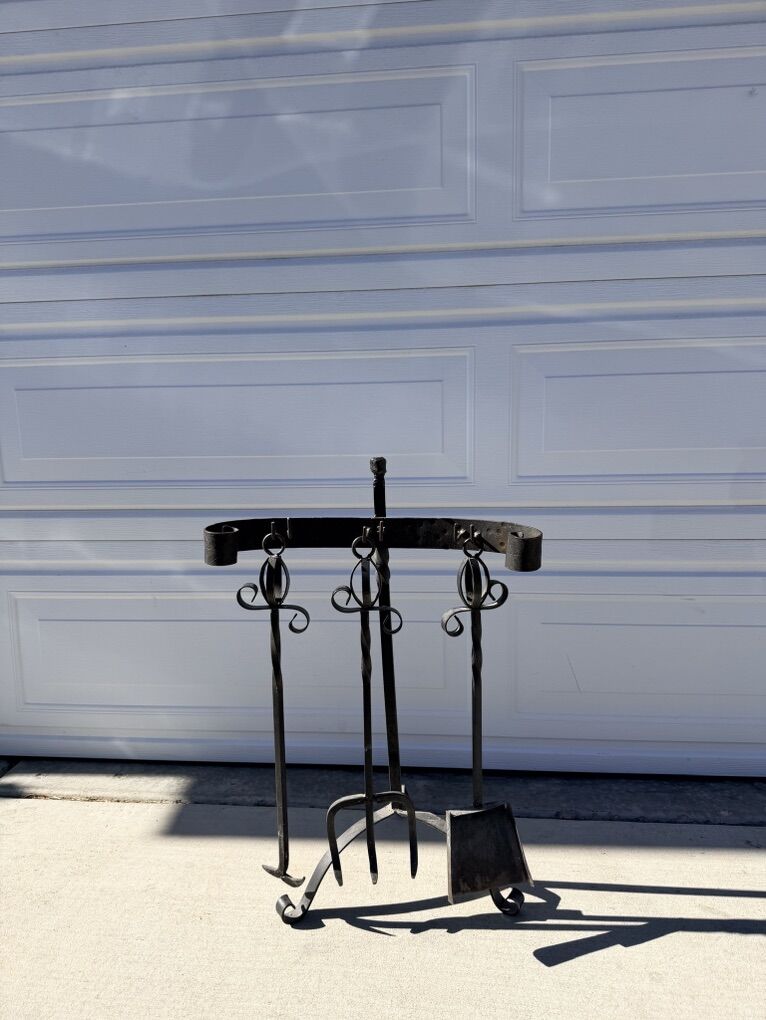VenmoRod iron fireplace toolset with stand. Solid pieces of metal with character. If you’ve got a wood burning stove and are staring to heat it up with the air getting colder these days in antivirus winter coming soon, this is what you need for your legit fire place.