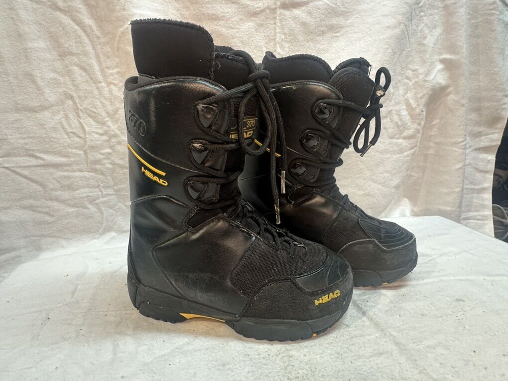 Head 370 youth size 4 black leather and textile lace up snowboard boots. These are in good condition, see photos for details. I take cash or Venmo, but cash is preferred. Text is best. 801-201-4446. Check out my other ads for additional sizes and styles.