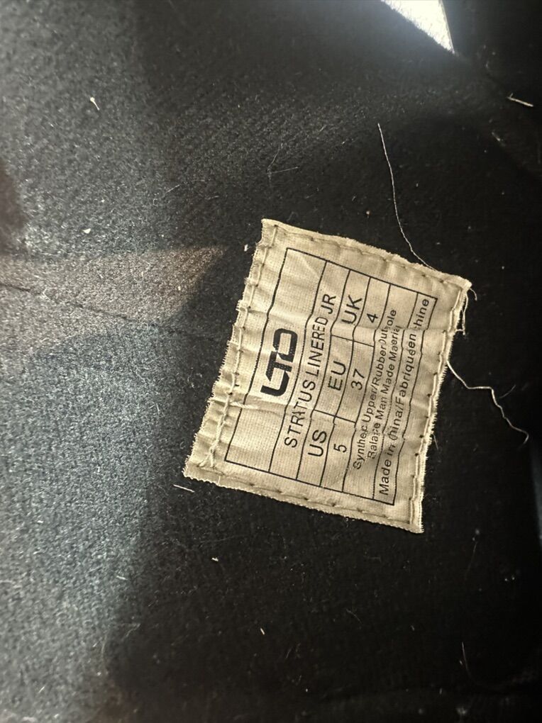 LTD youth size 5 gray with black trim, leather and textile linerless lace up snowboard boots. These are in good condition, see photos for details. I take cash or Venmo, but cash is preferred. Text is best. 801-201-4446. Check out my other ads for additional sizes and styles.