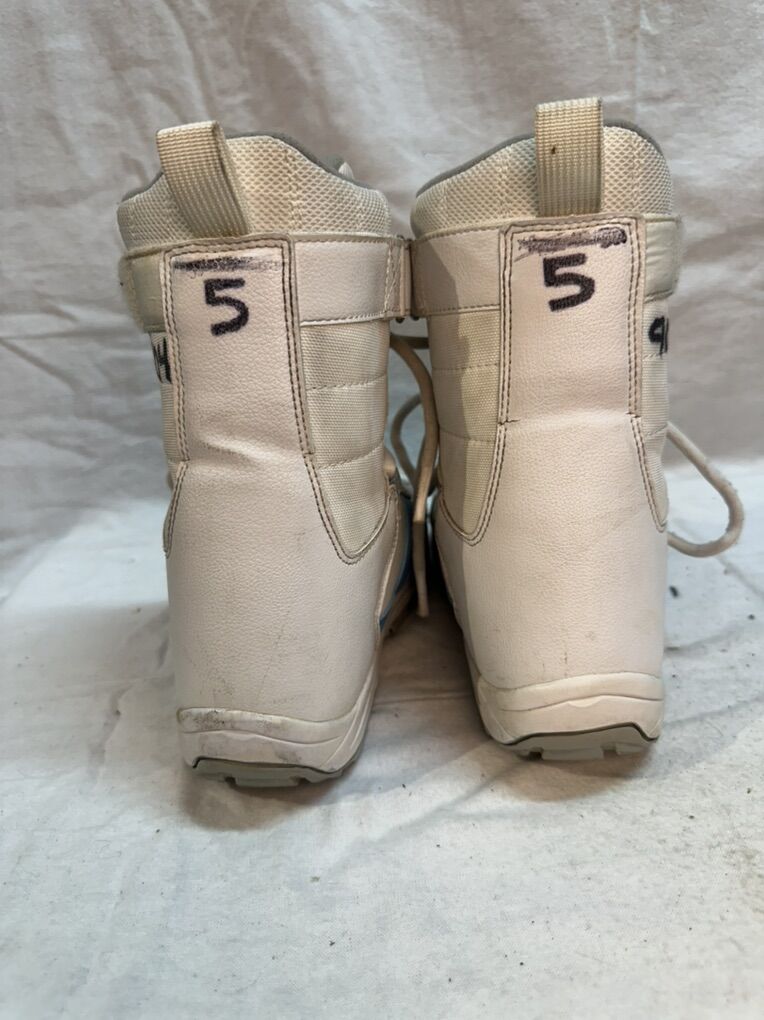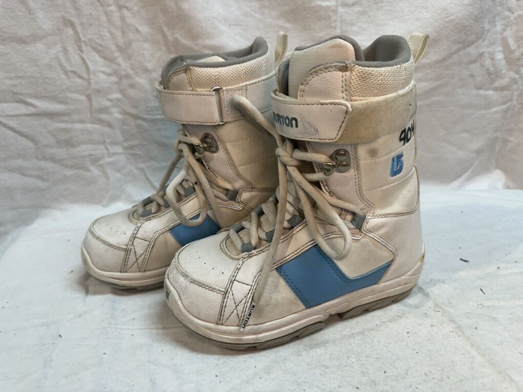 Burton freestyle youth size 5 white with blue trim lace up snowboard boots. These are in good condition, see photos for details. I take cash or Venmo, but cash is preferred. Text is best. 801-201-4446. Check out my other ads for additional sizes and styles.