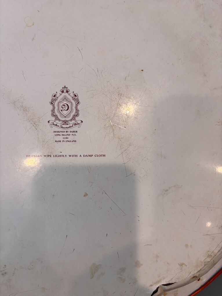 Cool Vintage English Tin Platter/Tray. Wear consistent with age, fun unique piece! Located in Murray cash/Venmo. Fcfs or hold with Venmo