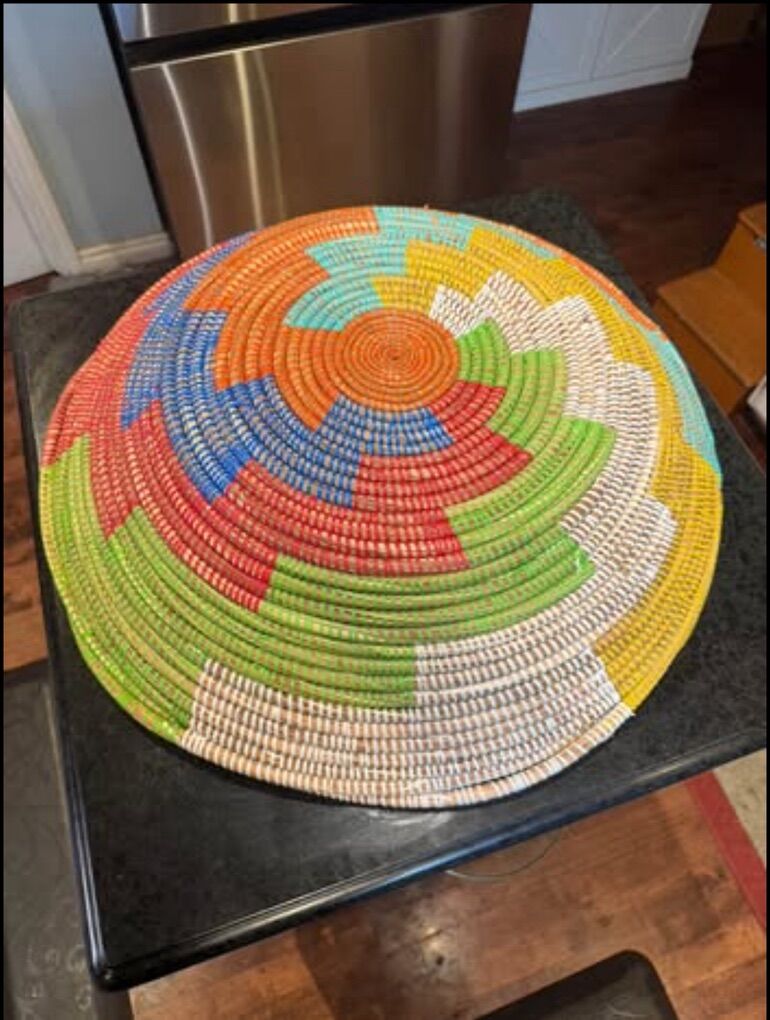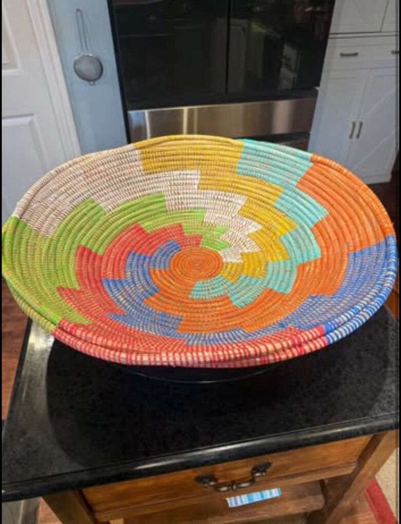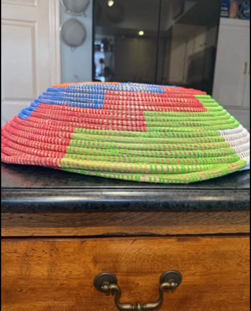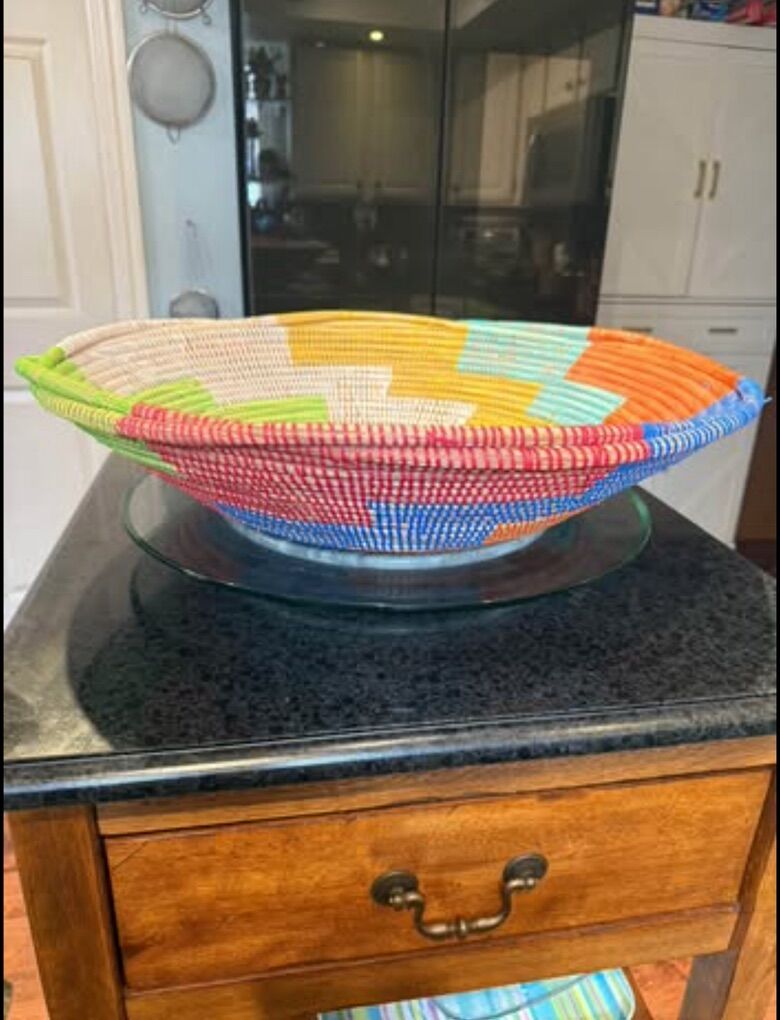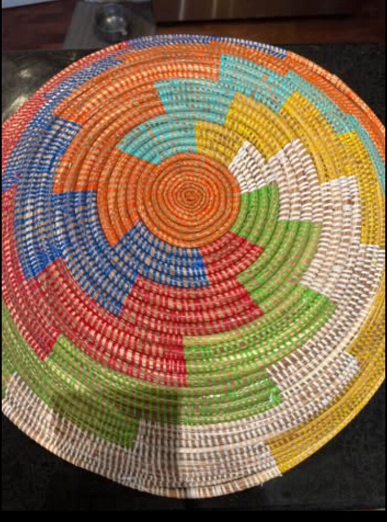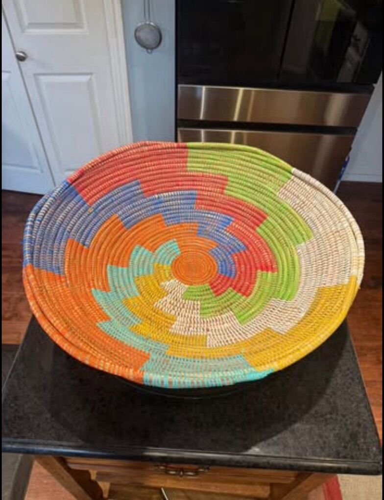 Lovely Hand woven sweet grass colorful 23” Diameter, Basket/Bowl