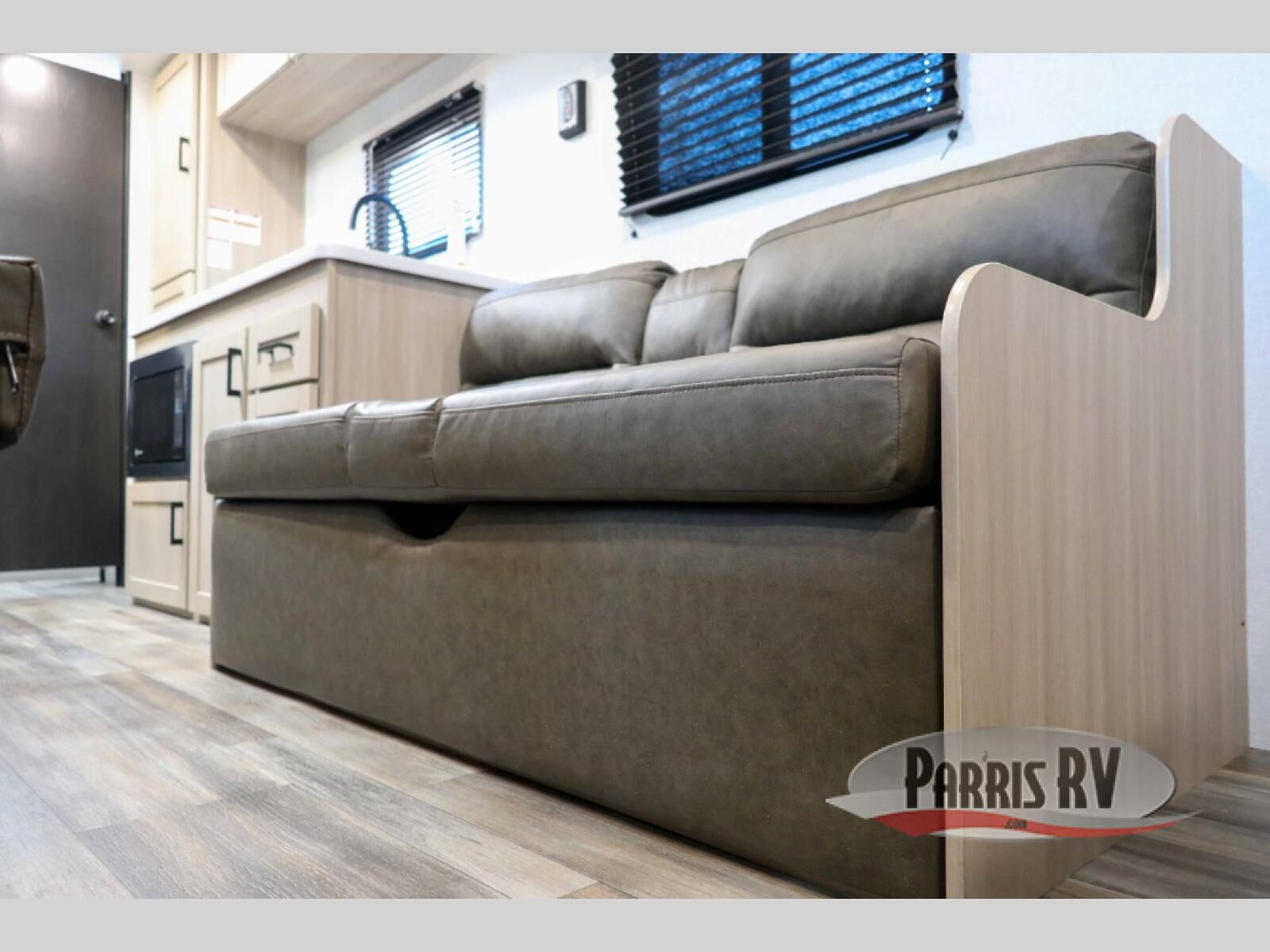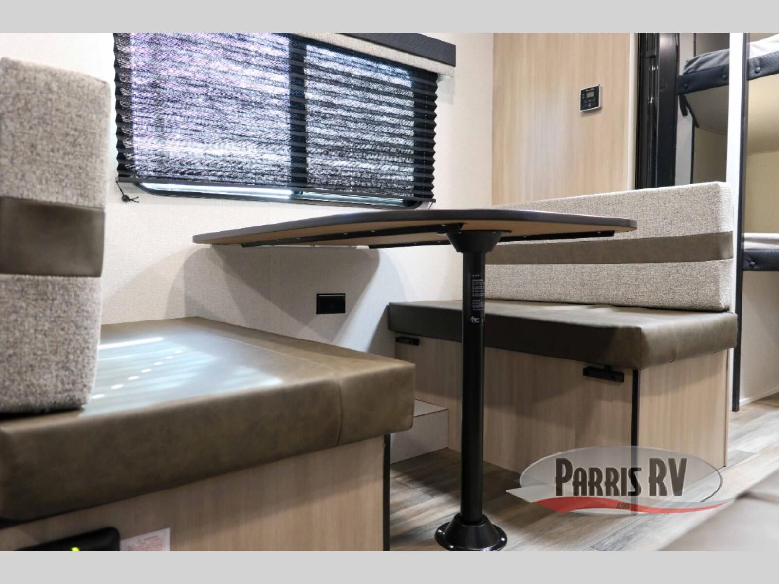 If you enjoy camping with a larger group, this travel trailer is perfect for you! There are double-size bunks in the back, which are right next to the private bath with a toilet and 40" shower. You can take the front queen bed with dual wardrobes, and any other guests can convert the sofa and booth dinette to sleeping space. A two-burner cooktop will let you make breakfast for everyone in the morning, and a 12V refrigerator will keep your perishables fresh!