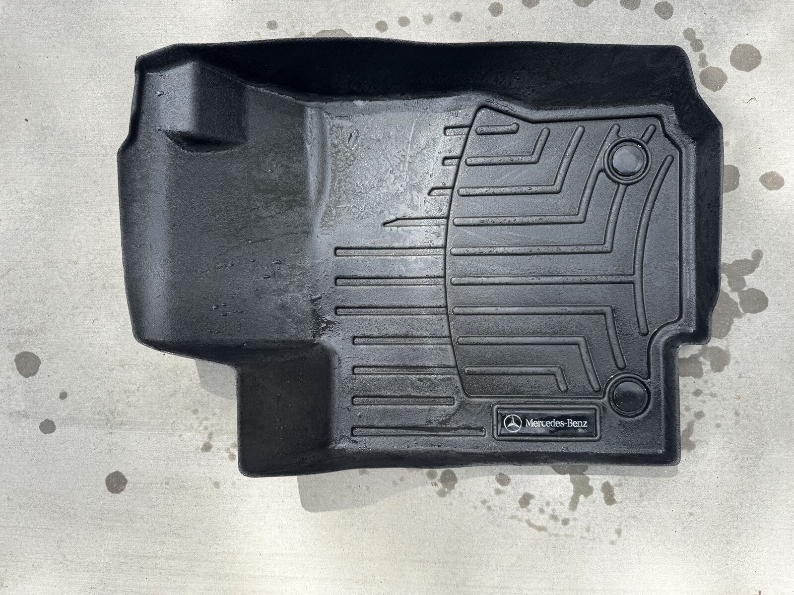 Robust- washable synthetic material- designed for heavy use. Covers the entire footwell. The raised edges and structured surface help keep the floor clean and dry. With distinctive Mercedes-Benz lettering. Floor mats have to undergo rigorous testing before they are deemed worthy of the star logo: durability- fade-resistant colour and a neutral odour- even after three winters of use- are all specifications which must be met without compromise.