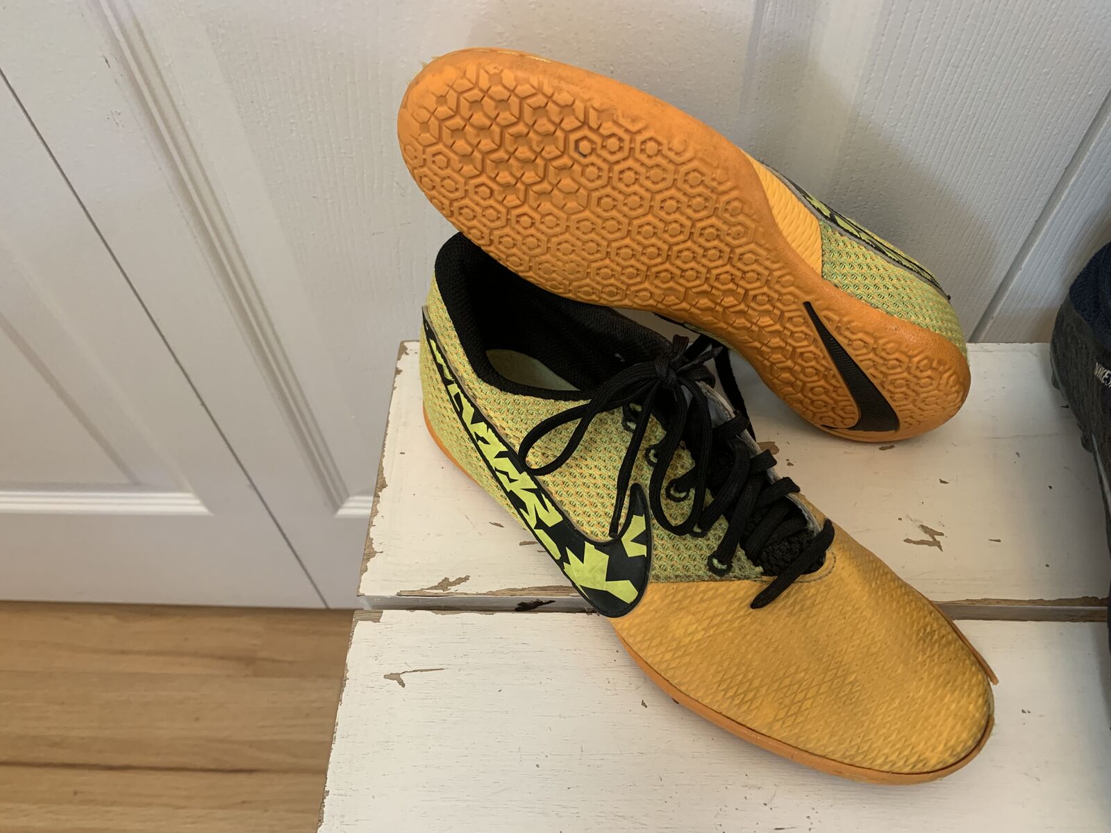 Mens cleats size Yellow 7 1/2.. Blue 8 1/2(SOLD)... Red 9(SOLD).. Black 8 1/2 - Boys shin guards Adidas L Wilson. Shin Guards $3..... Cleats $5..... Black Nike indoor & Yellow Nike indoor $10
