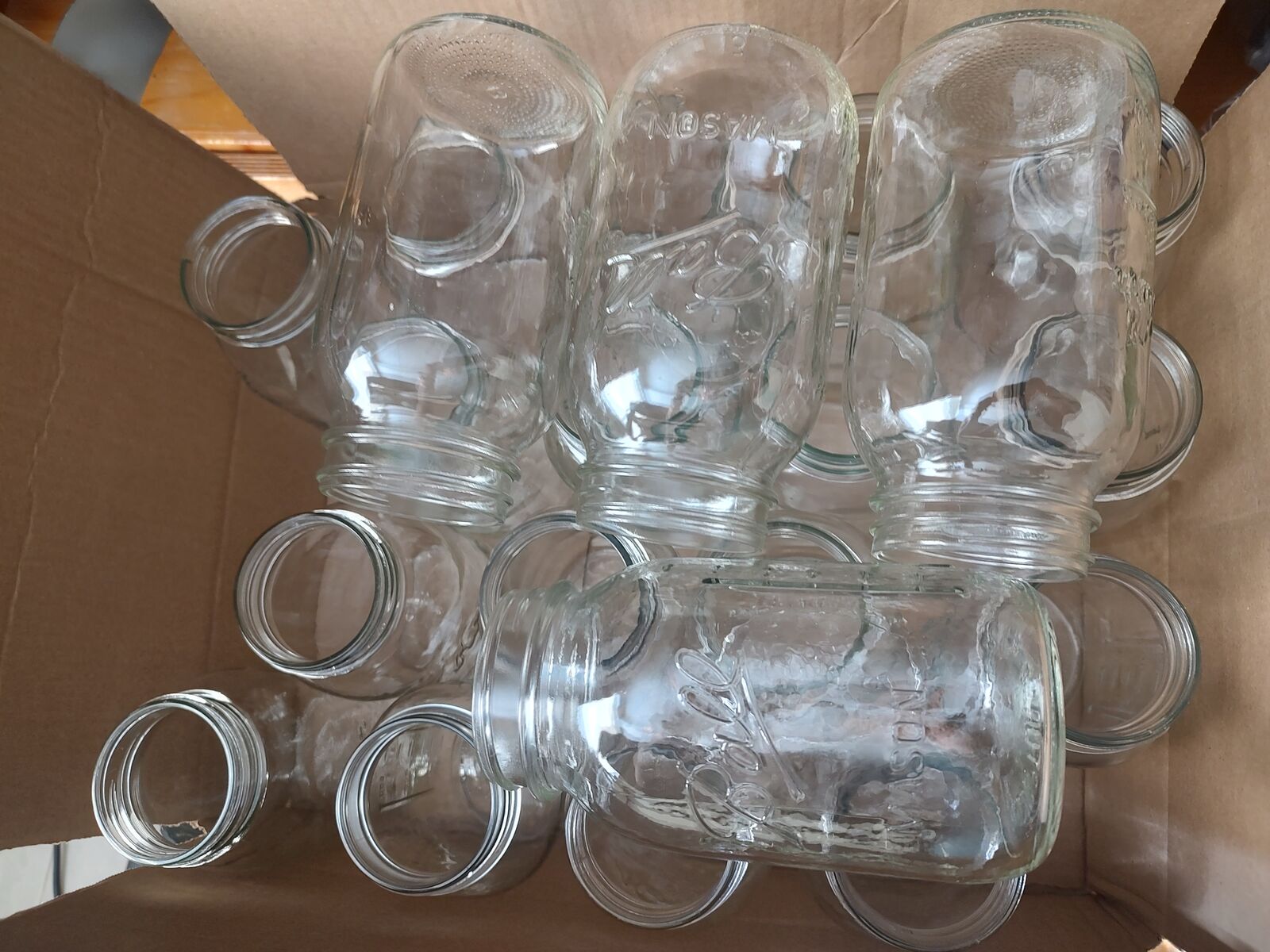 5 dozen regular pint canning jars. Pints all have canning rings of varying quality.