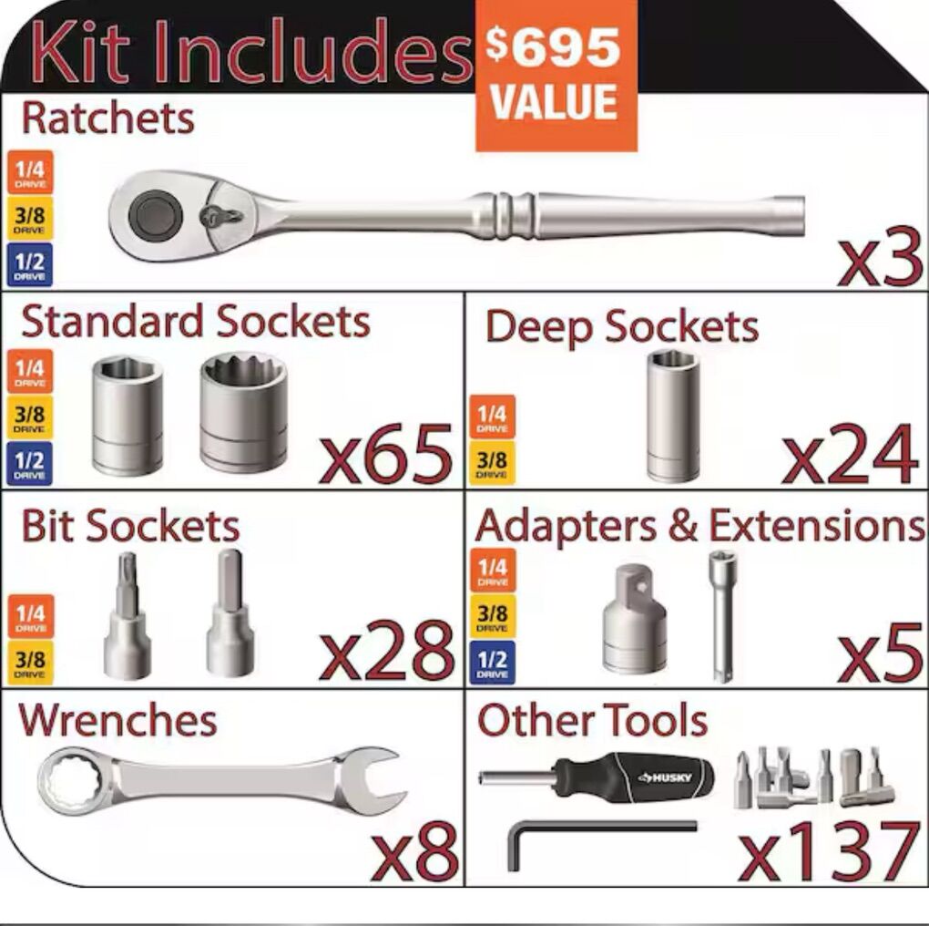 VenmoNew Husky Mechanics Tool Set (270-Piece). New! Multiple available NOT INTERESTED IN OFFERS OR TRADES PRICE IS FIRM