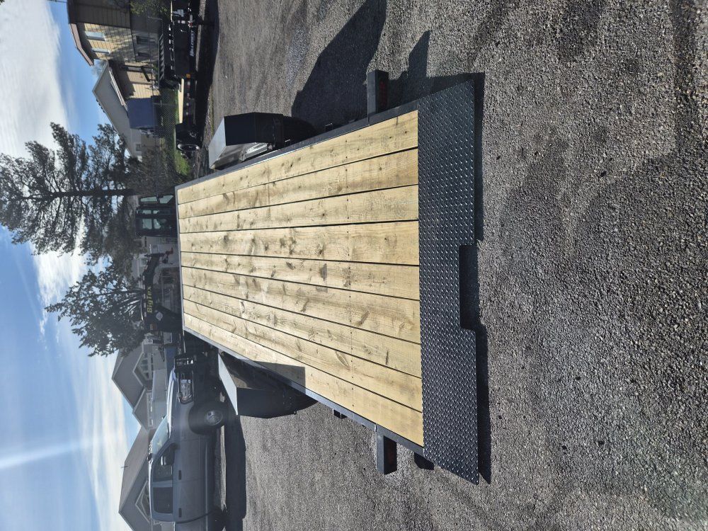 CATEGORY SPECIFICATIONS Axles (14K) 2 - 7000# Premium, Cambered Axles with Quick-Lubricating Hubs Axles (16K) 2 - 8000# Premium Hybrid, Cambered Axles Brakes Forward Self-Adjusting Electric Brakes on Both Axles Suspension Multi-Leaf Slipper Spring w/ Equalizer Tongue 6" Channel Wrap Tongue Coupler (14K) 2-5/16" Adjustable Coupler Coupler (16K) 2-5/16" Adjustable Demco Coupler Safety Chains 3/8" Grade 70 w/ Safety Latch Hook (2 ea) Jack 12,000# Top Wind,Drop Leg, Set-Back Jack Frame 6" Factory Channel Cross-Members 3" Factory Channel Front Stop Rail 3/16" Fabricated Front Stop Rail Floor 2" Treated Pine Fenders Removable Double Broke Fenders Stake Pockets Stake Pockets Along Both Sides Trailer Plug 7-Way RV Lights Recessed, Grommet-Mounted L.E.D. Lighting Wiring Sealed Modular Wiring Harness Tires ST235/80 R-16 Load Range E Radial Tires Bolt Pattern 8-Bolt Paint Type Sherwin Williams Shawn 801-309-8290