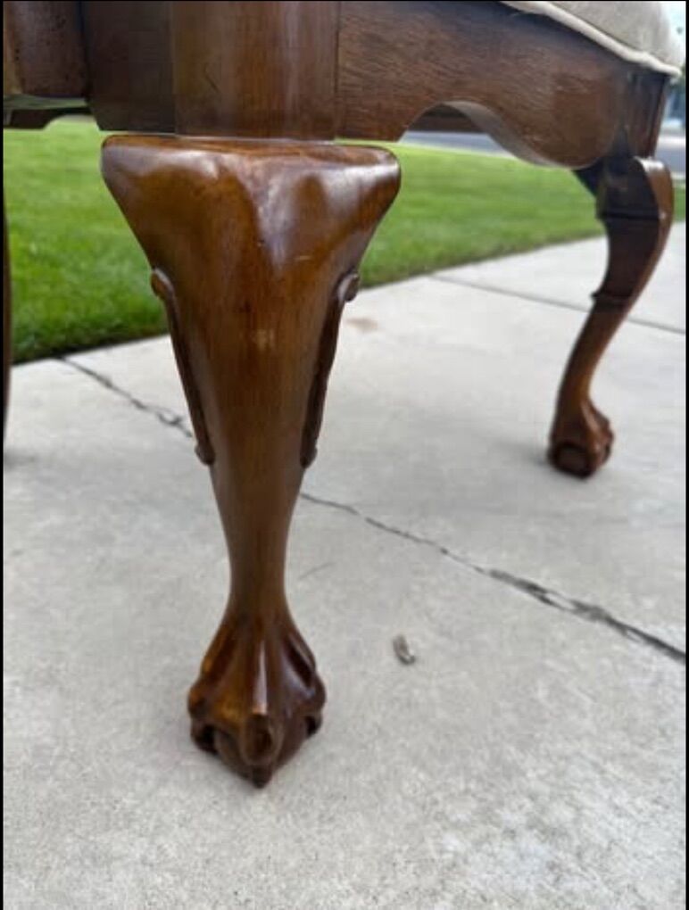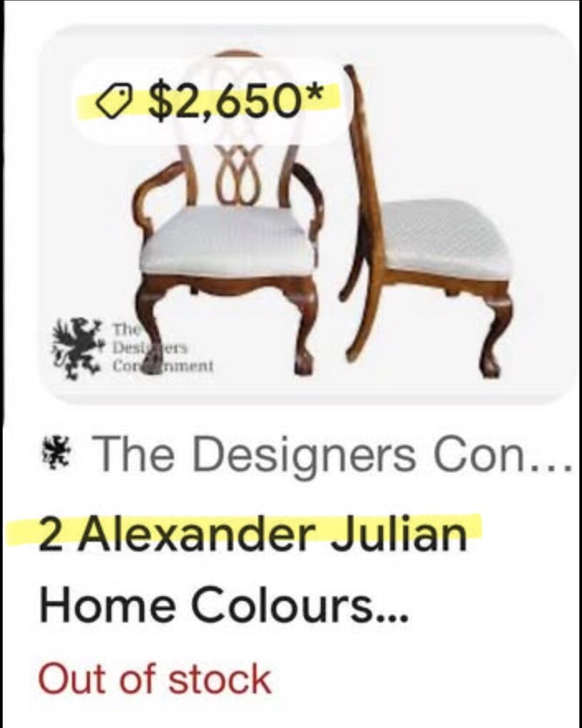 Beautiful 1 Alexander Julian Home Colours Chippendale Style Chair W/ Ball Claw Foot In Great clean Condition! chair features a unique shape with an interlaced back, and cabriole legs leading to ball and claw feet. The upholstery is a diamond pattern. Measurements 24 Wide 22 wide Cusion 18 deep seat 40.5 tall floor to top back 18.5 tall floor to seat