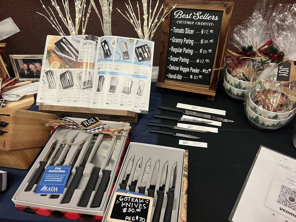 VenmoKristy’s Kutting Edge- Rada Cutlery Lifetime guarantee. Proudly made in the USA. Christmas is coming fast. Holiday gift sets now available. Perfect gifts for family, friends or neighbors this holiday season. Allow us to gift wrap the best knives in the world for you. Items and prices vary.