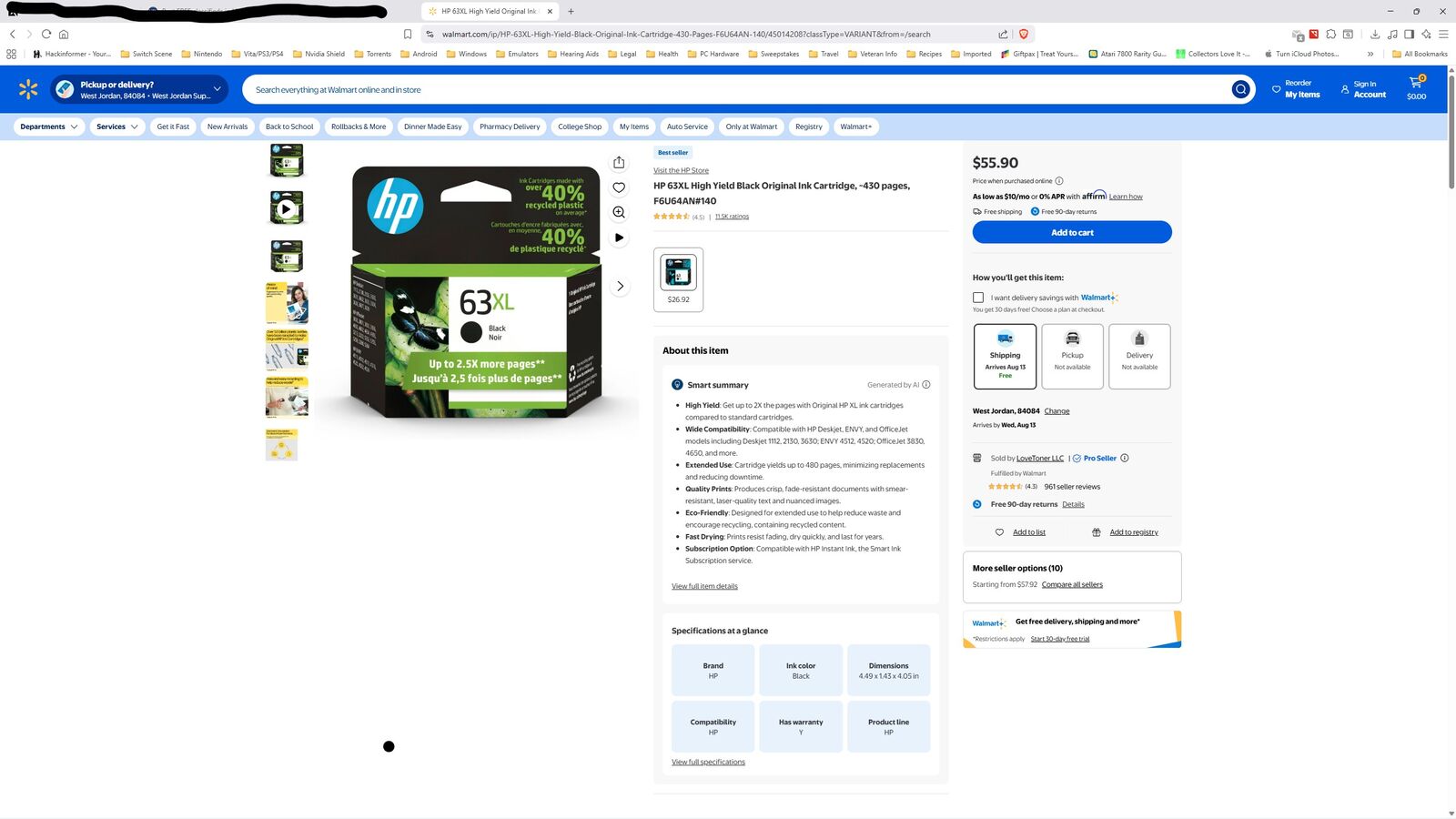 ZelleHP 63XL Black Ink, New, Factory Sealed I bought the wrong size ink for my printer, so here is a brand new, unopened Genuine hp 63XL Black Ink Cartridge (I threw away the outer box, so I can't return it. The ink is still factory sealed in the inner foil wrapper) I paid about $55 at Target, But I'll sell it for $25 to at least cut some of my loss! Text Mike (385) 588-5061