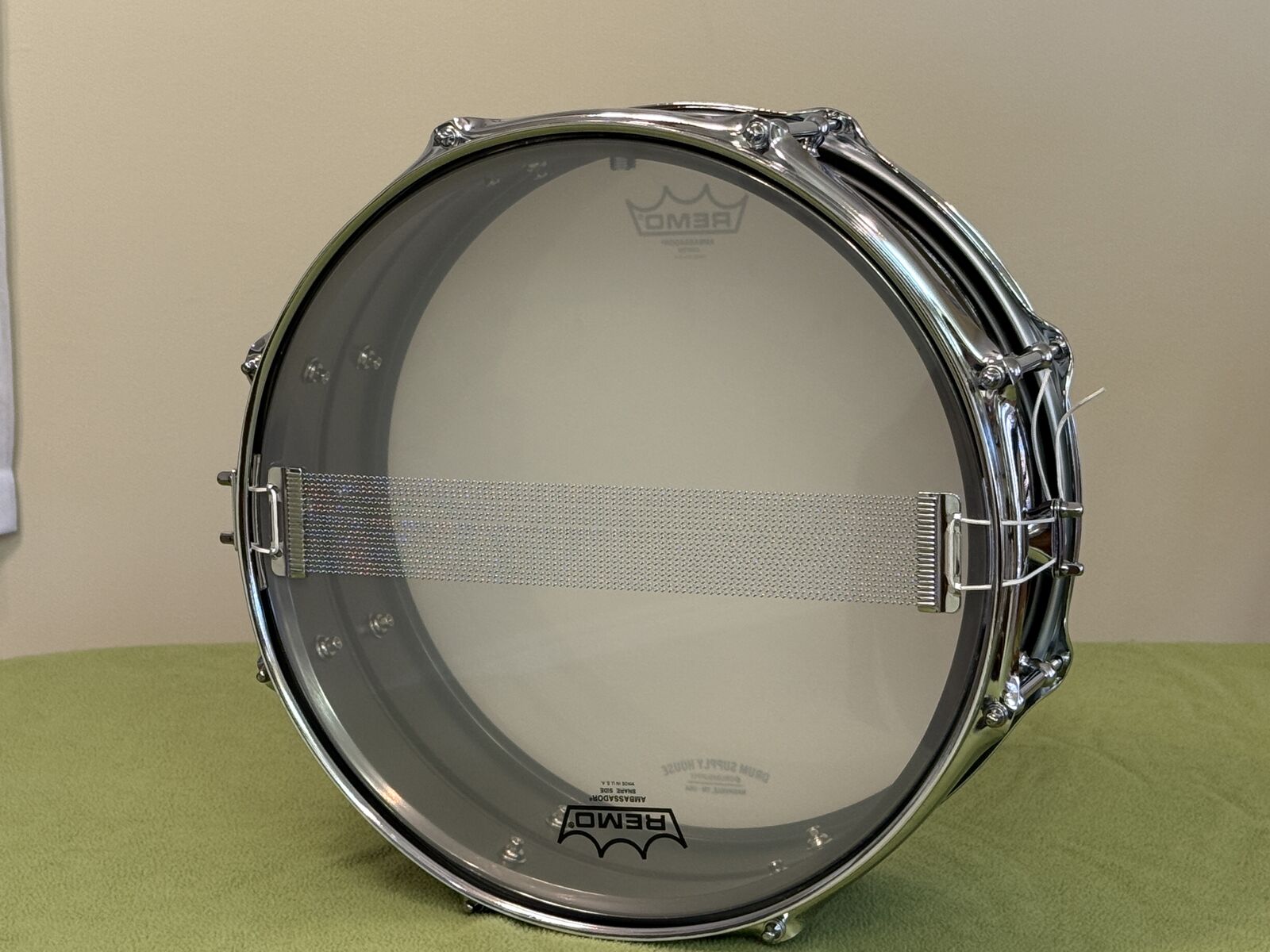 VenmoBlack Brass Snare Drum 5 x 14 (1.2mm shell) Remo Coated Ambassador Batter Side Drum Head Remo Ambassador Snare Side Drum Head Chrome 2.3mm triple flanged 8 hole hoops Chrome strainer and butt plate Chrome over brass tube lugs (8) Newly built from DIY kit