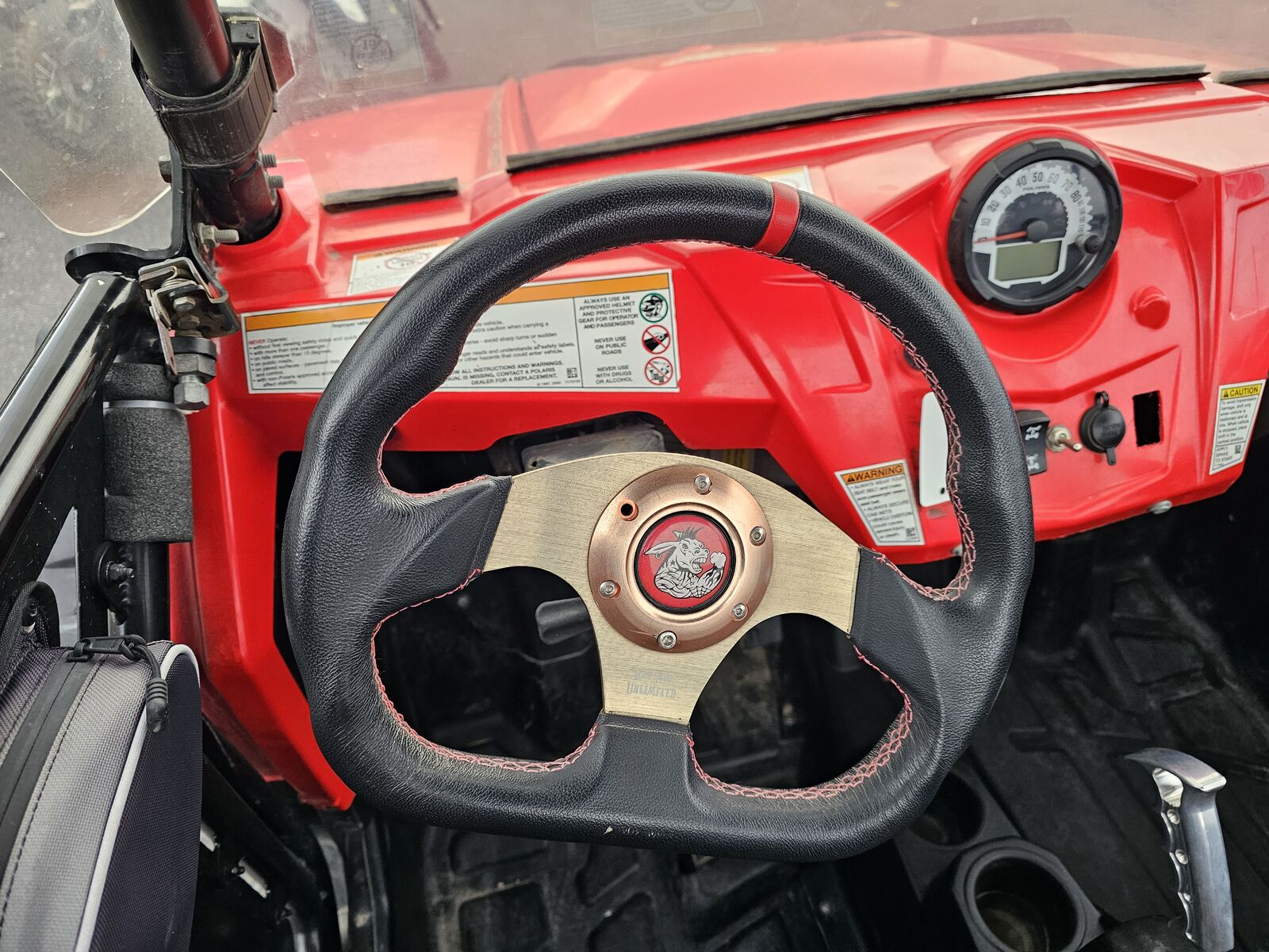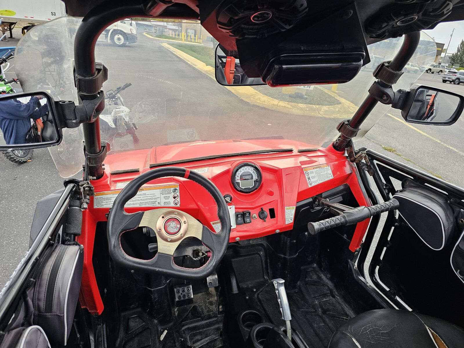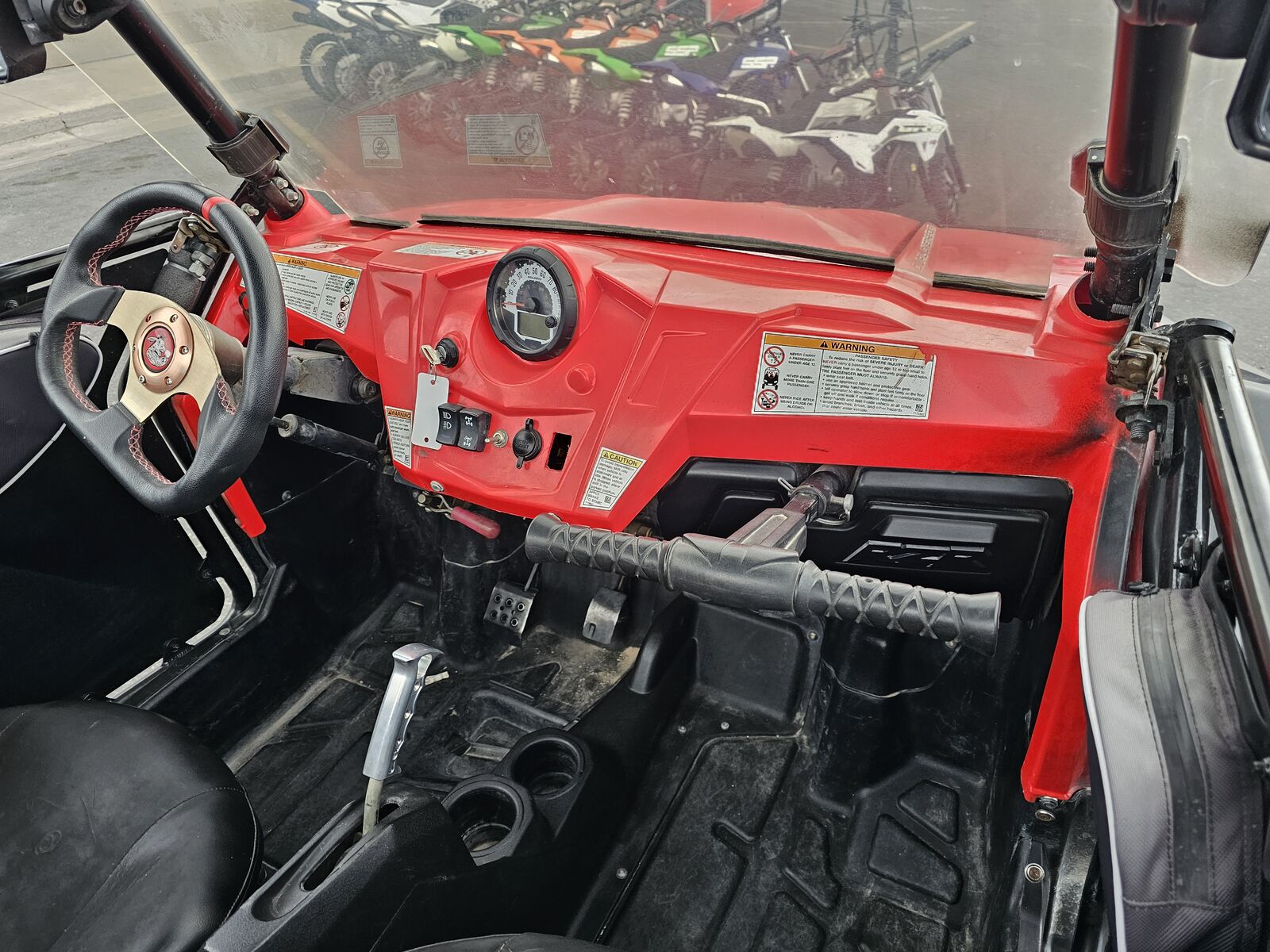 Front: Dual A-arm Fox Podium x 2.0 (comp adjust / res.) 13.5 in. (34.3 cm) travel