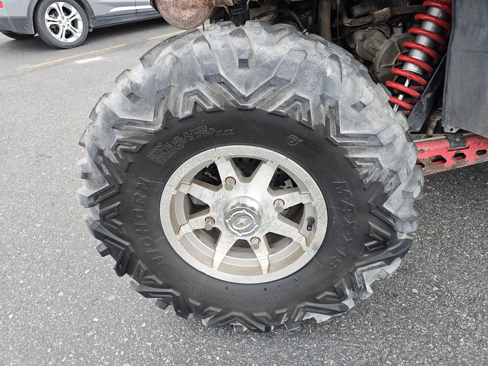 Rear: Trailing arm Fox Podium x 2.0 (comp adjust / res.) 14 in. (35.6 cm) travel