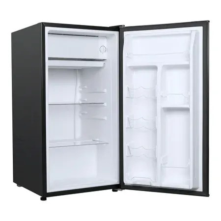 LOT 650 NEW WITH SMALL SHIPPING DAMAGE Galanz 3.3 Cu ft One Door Mini Fridge, Black Estar 3.3 Cu ft Capacity Black Mini Fridge Estar Certified Reversible Door 2 adjustable leveling legs Temperature control dial Handy can dispenser Product dimensions: 17.48" W x 19.09" D x 33.19" H Condition: New