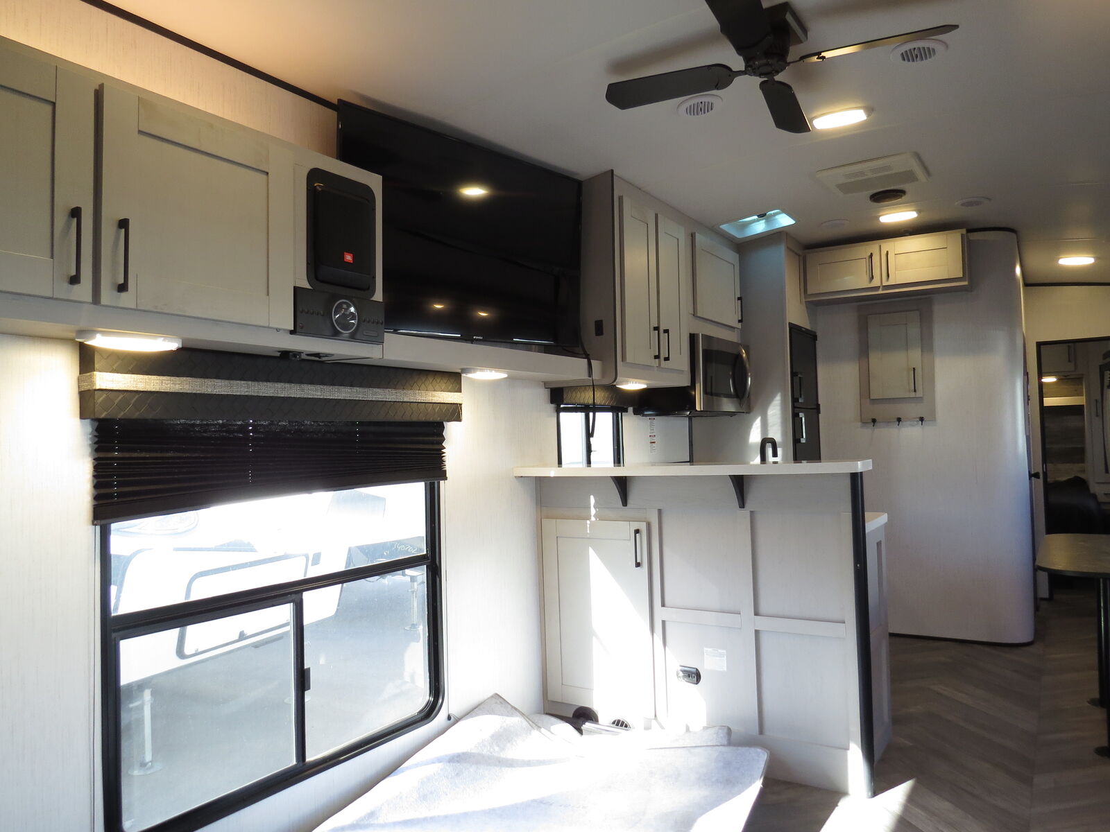 1 Slide!, 14' Garage Space!, BIG Kitchen with Couch Slide, Onan 4000 Watt Generator (Only 51 Hours!), Front KING Bed!, Double Electric rear Beds with bottom bed makes into Dinette, Big bathroom, Electric patio awning, Fiberglass exterior, A/C unit and Heat. Location: 50 S Frontage Rd, Springville Dealer#832B Quality RV -Financing Available-