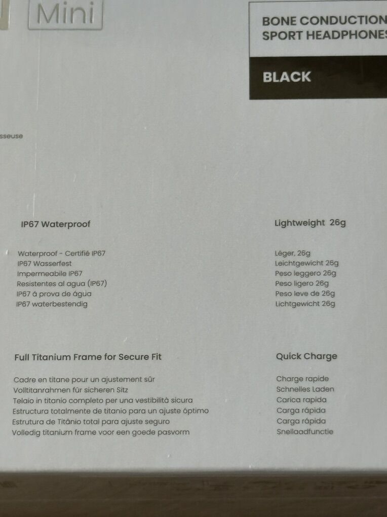 ZelleShokz OpenRun Mini Bluetooth Wireless Headphones - Black, Open-Ear, USB, Water Resistant.