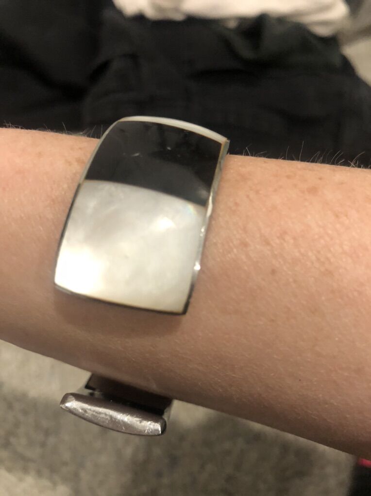 MOTHER OF PEARL & BLACK ONYX BANGLE BRACELET VINTAGE