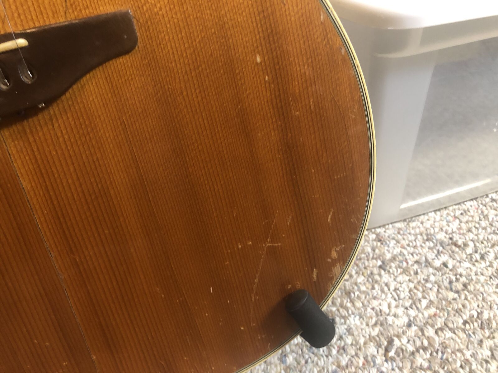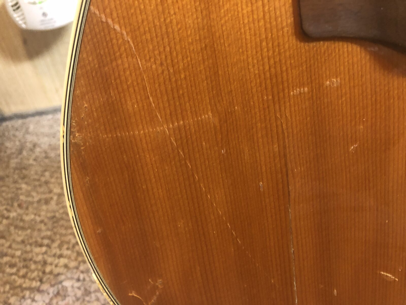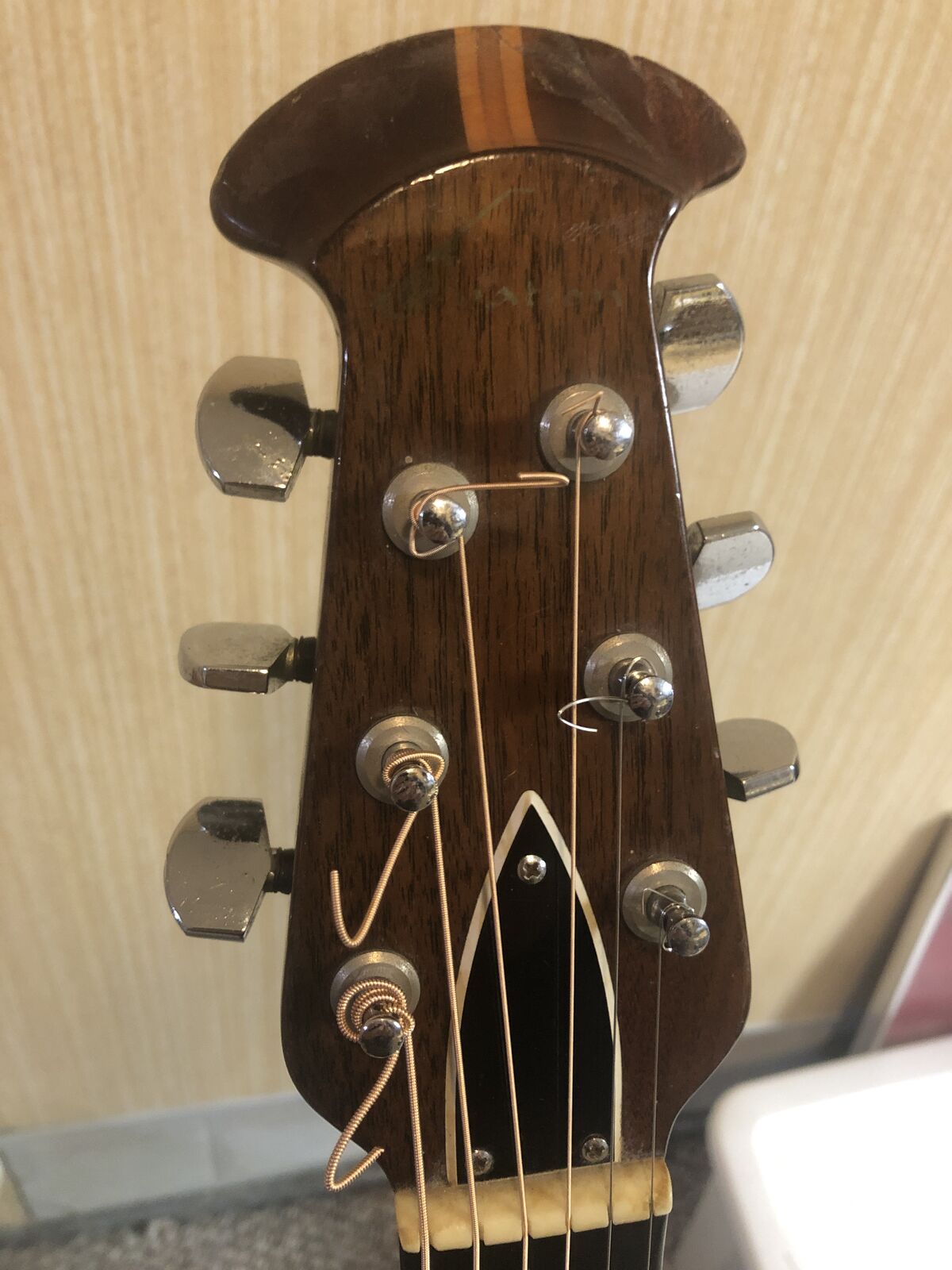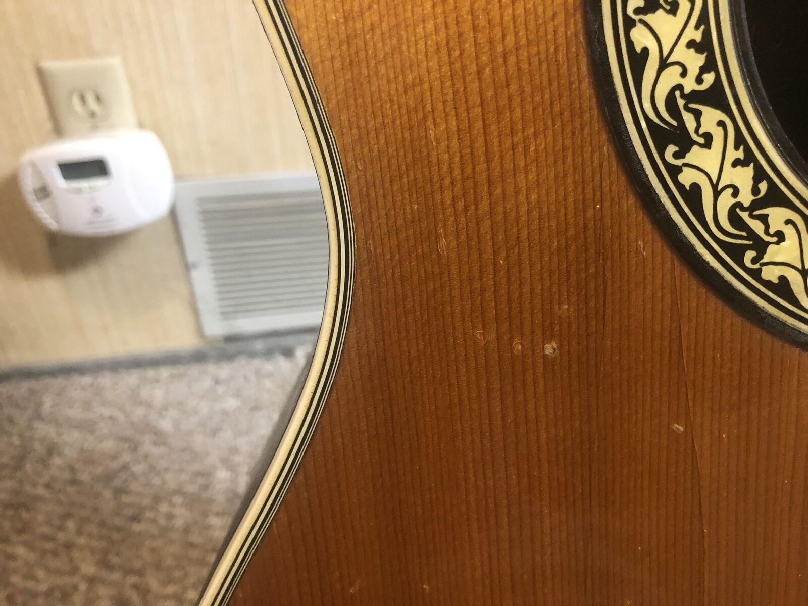 This Guitar Sounds Great and has Excellent, Easy Playability! It's in a bit rough physical condition with nicks and some binding damage (see photos), but it has a working built-in pick-up that has a great sound when plugged into an amp!