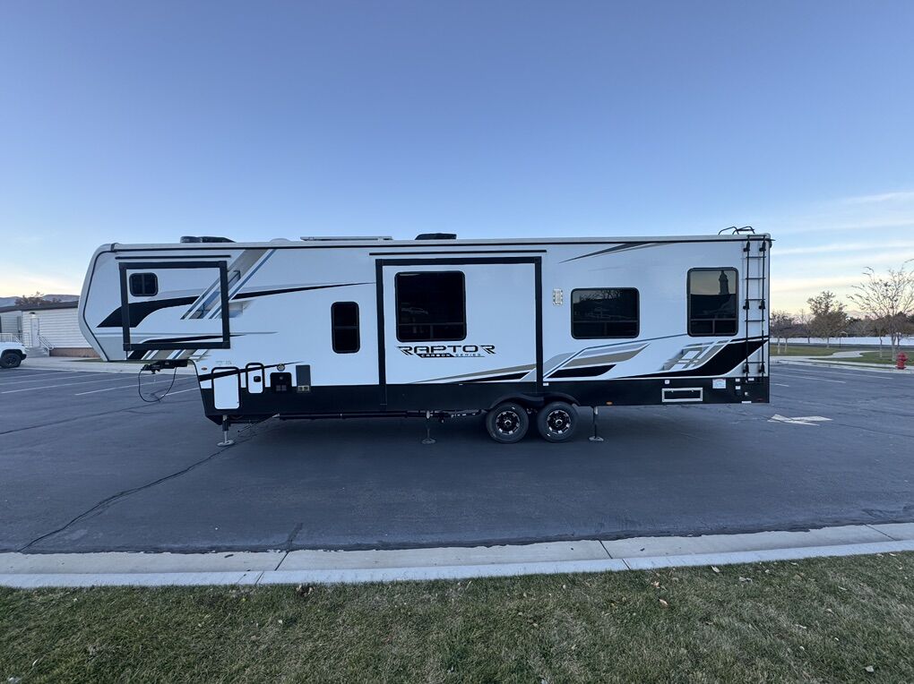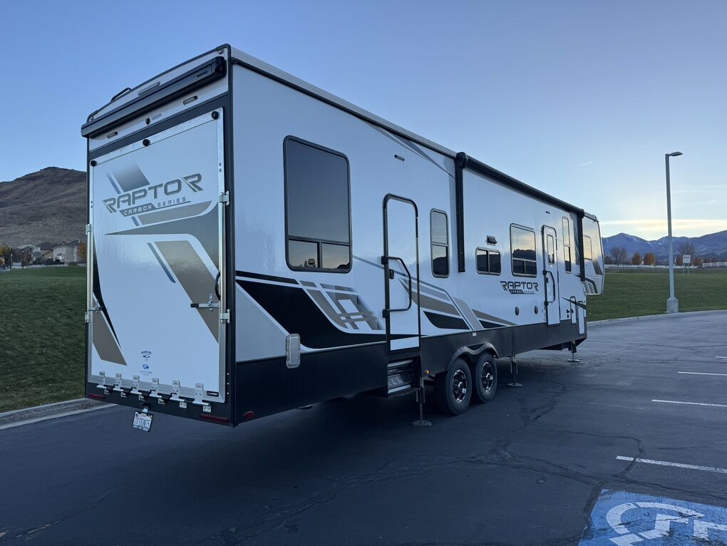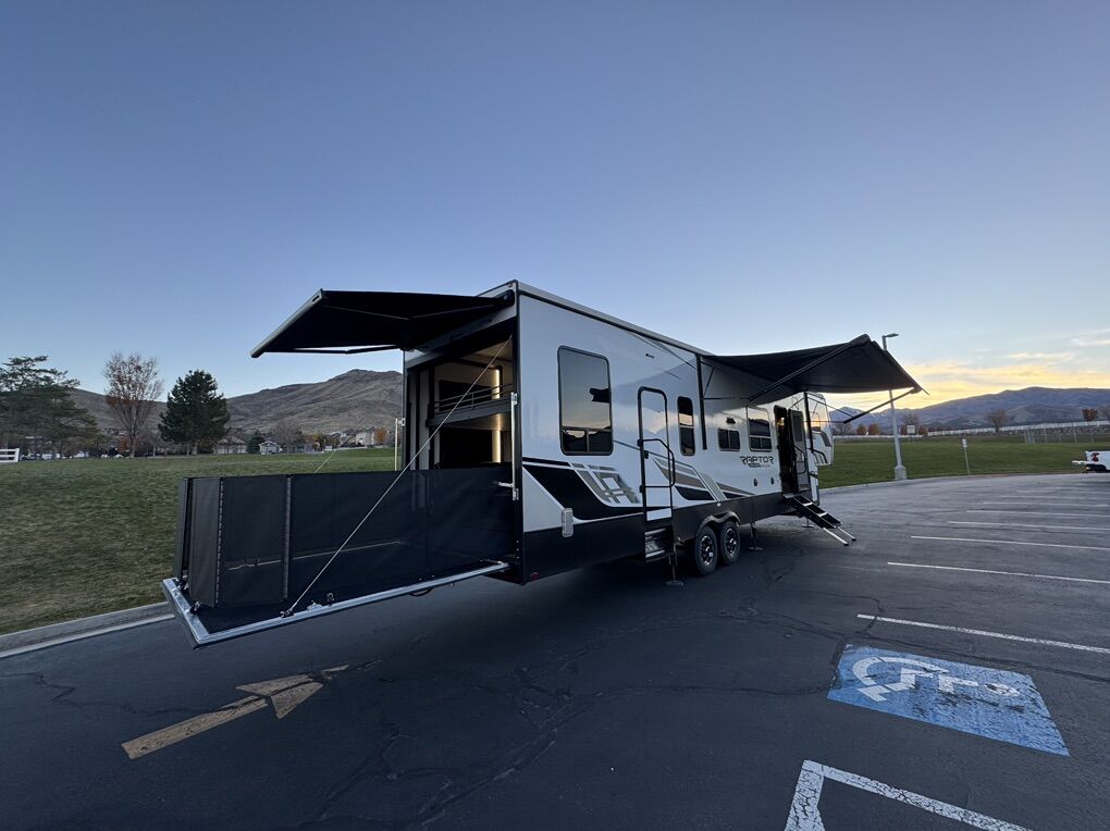2024 Keystone Raptor Carbon 360 Almost brand new condition 13’ garage Onan 5500 generator only 4.8 hrs Hydraulic auto leveling Victron solar controller and battery shunt Lithium 280ah battery Upgraded to new heavy duty tires in April Added custom railings to back bunk bed so kids won’t fall Added dressers in garage (can be easily removed) Amazing toy hauler, only selling because we need some funds for growth in our business.