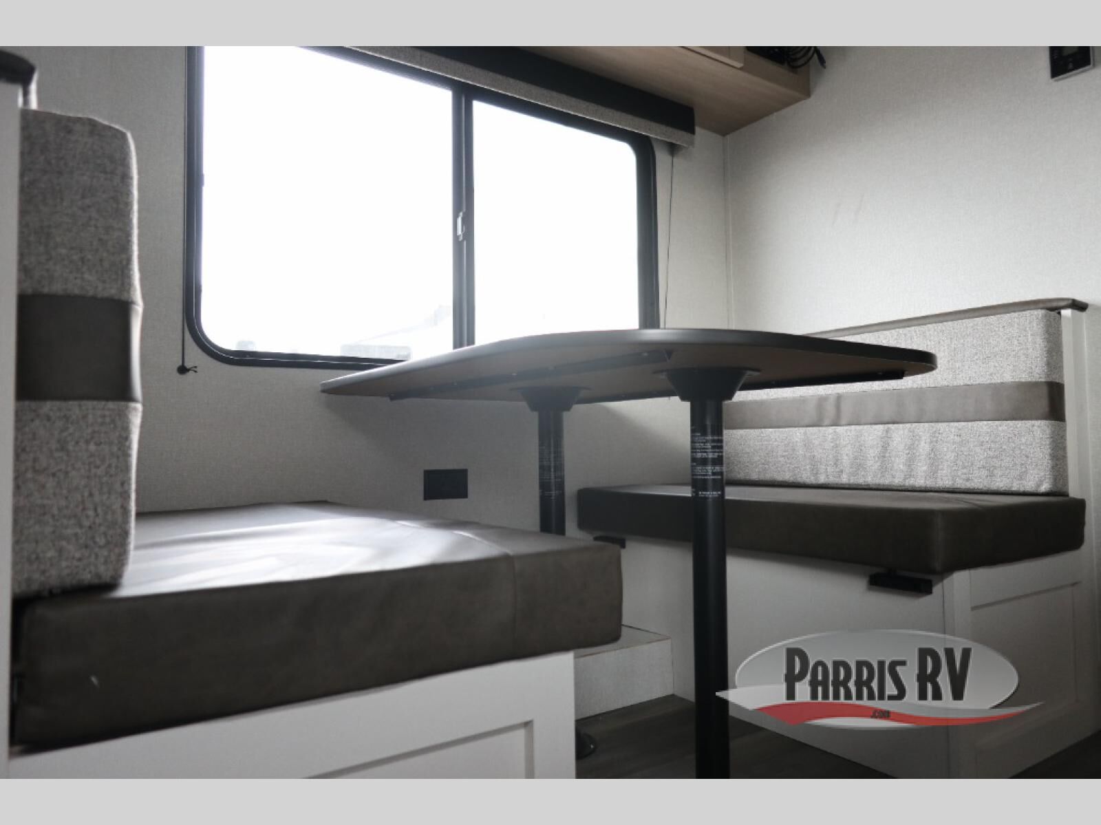 This travel trailer features compact sleeping spaces thanks to the double-size bunk beds in the rear corner, and the private full bath is right next to the bunks for easy nighttime use! You'll have the front Murphy bed all to yourselves, and in the morning, you can fold it away to sit on the jack-knife sofa. A three-burner cooktop and microwave oven will let you make meals each day, and there is a 12V refrigerator to keep your cold items fresh. Outside, you'll enjoy the 13' power awning with LED lights for added shade, and there are two exterior storage compartments to keep fishing poles, hiking gear and more!