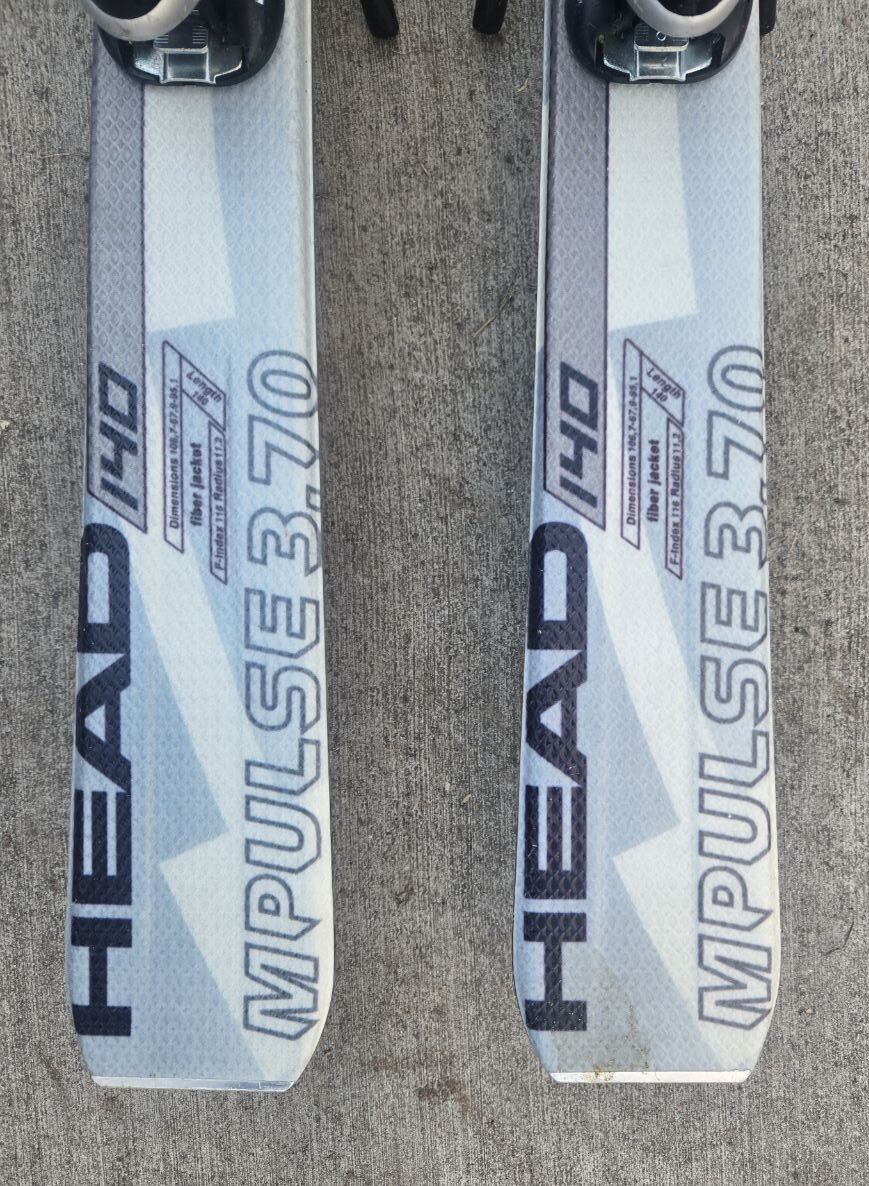 VenmoGreat 140 cm Head MPulse 3.70downhill all mountain snow skis in great condition. Skis have Tyrolia SL100 Bindings. Tip/Waist/Tail Dimensions: 106.7/67.9/95.1mm. Turning radius 11.2 m. Bottoms are clean. Text please!