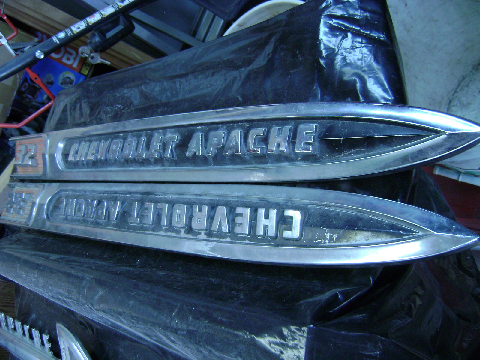 For sale are great selection of 1958-1959 Chevrolet Apache Truck Fender and Hood Embelem's. Original some are missing mount studs. Hood the V8 and Inline 6. The Inline 6 has a little rust fixable. 3100 shark fin stepside and the 3200 fleetside. some are also missing mount studs. Pulled back In the 90' been In storage. Hood one's are sold seperate $250 OBO the Fender one's set for $175 OBO- Cash sale-Pickup Only-No Venmo-Zero Codes Of Any Kind!-Serious Only Please-Text for questions.