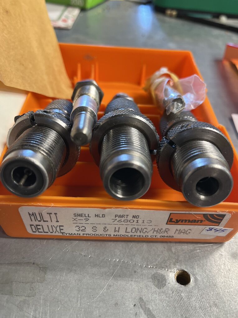 New Lyman carbide die set with an extra top punch and beller. 32 S W Long or 32 H R Mag. $45-10%=$41. I also have brass, bullets, powders and primers for both calibers. I will ship dies, bullets or brass for postage costs. Please see my other ads. Thanks, Joe.