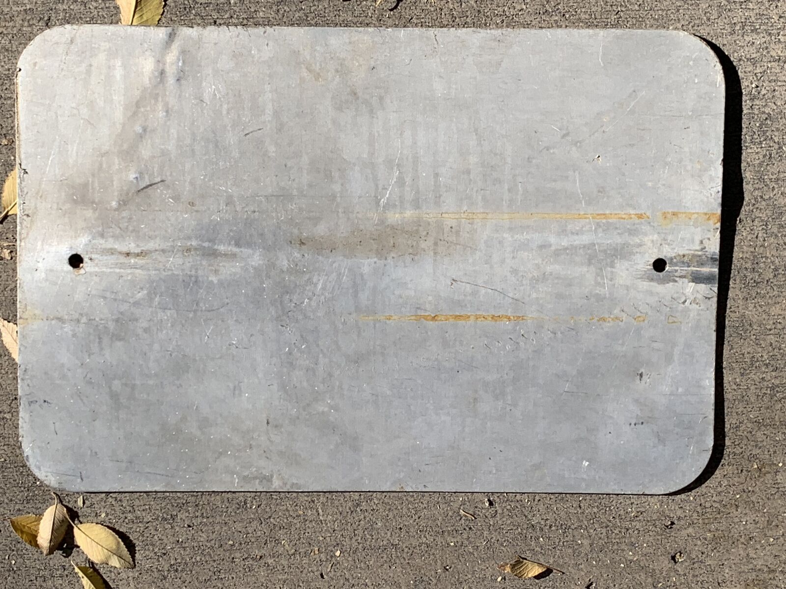 Venmo12" x 18". Has some white house paint on it. Auto wax and elbow grease will remove it and not hurt the sign.