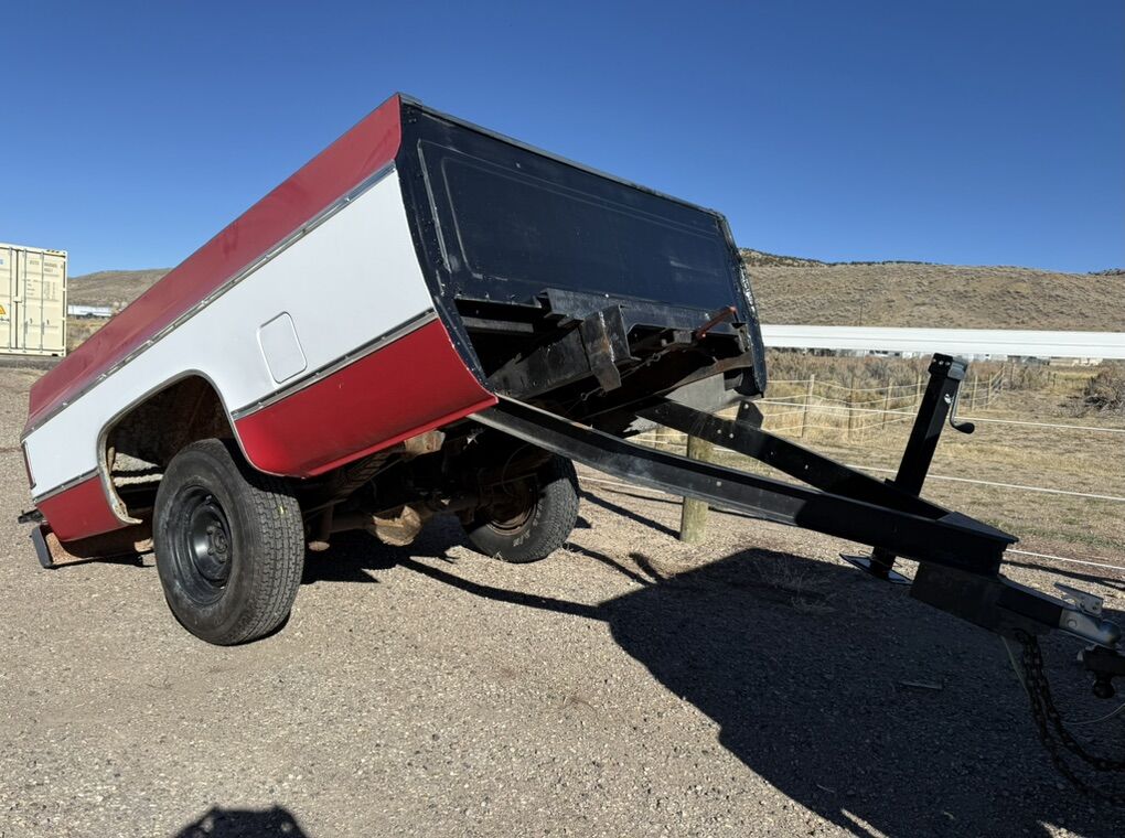 PayPalDump trailer is homemade (no title). Great for dirt work, gravel, manure etc for the yard. Pull the brake, pull the pin, and back up to dump the bed. Comes with spare wheel. $700