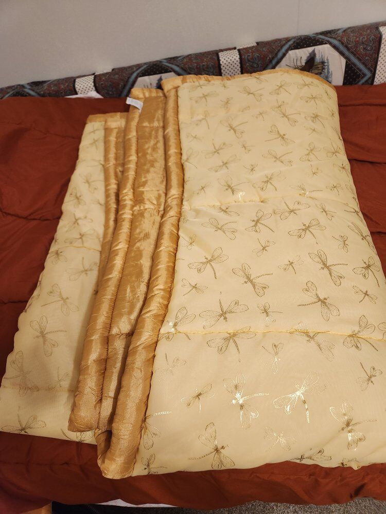 Vintage golden twin quilted comforter by Seventeen, comes with a pillow sham cover, like new condition, $15.00, cash or Venmo.
