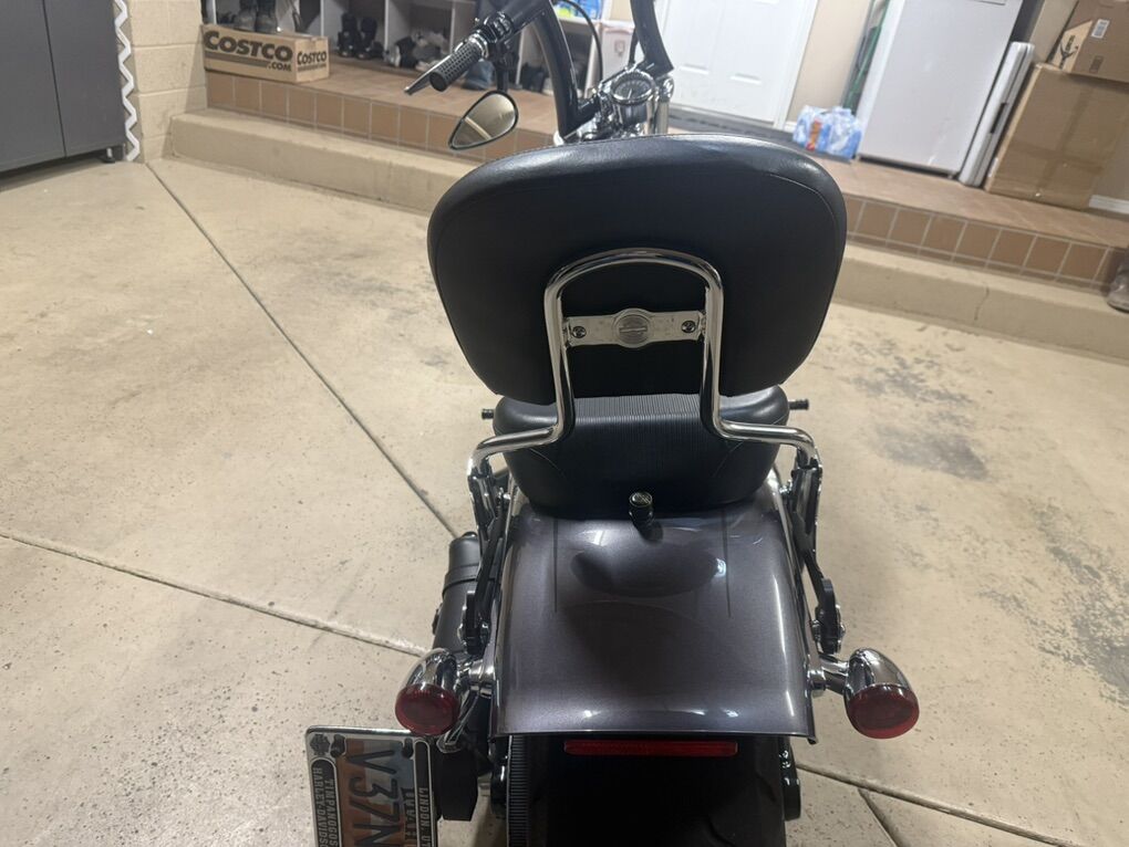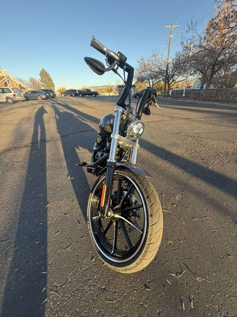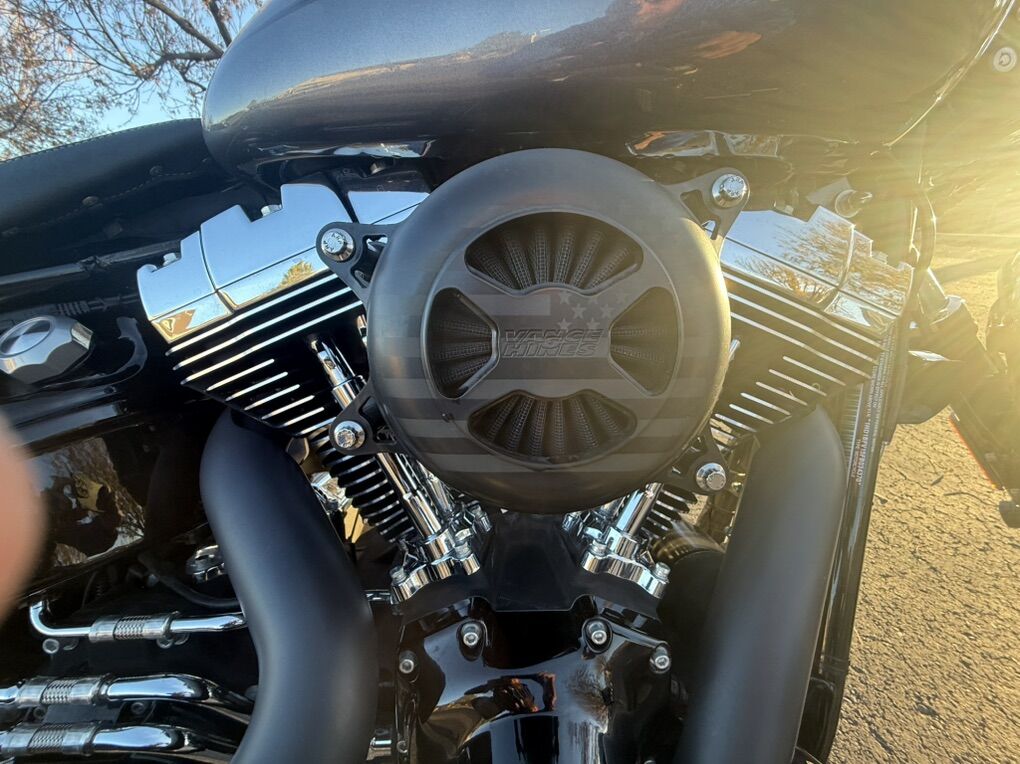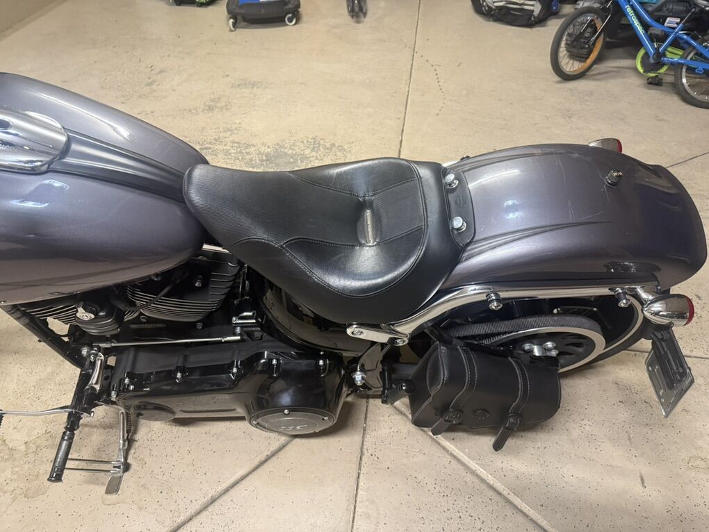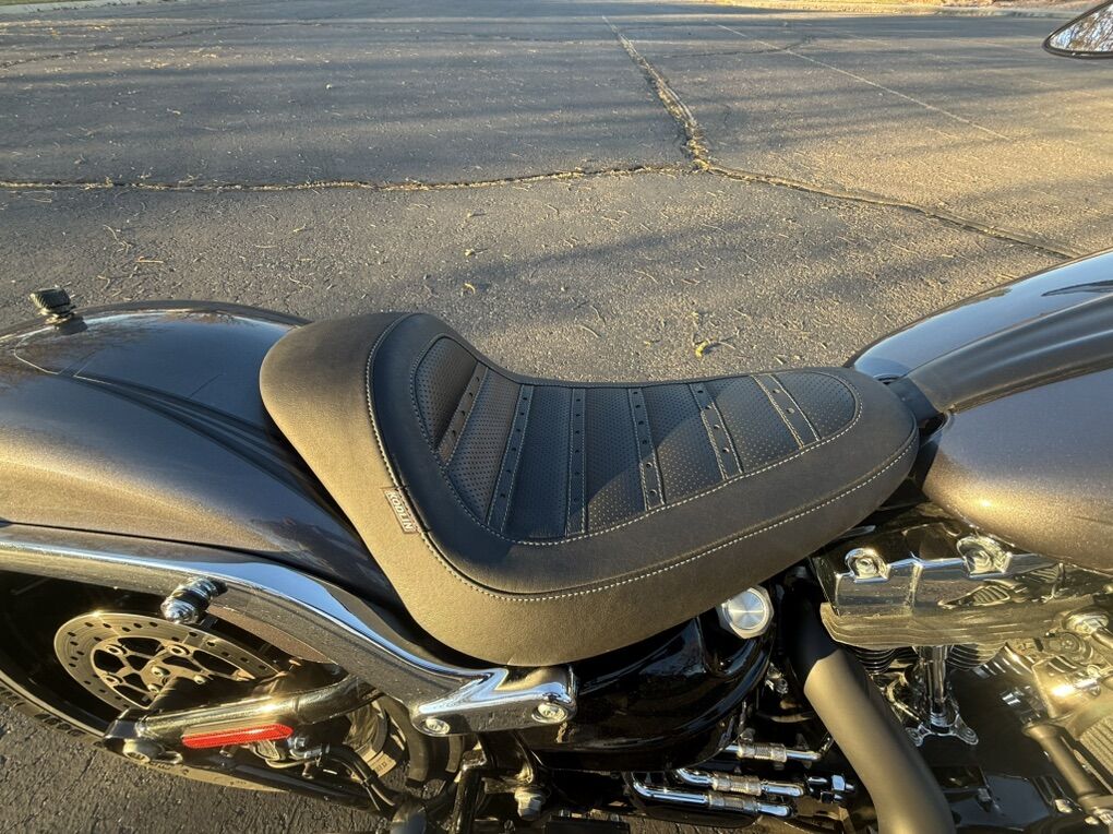 2015 Harley Davidson Breakout FXSB. Harley Davidson’s badest chopper style bike ever built with factory 240 fat rear tire and 45 degree rake. Immaculate condition, low miles, with lots of custom add-ons. Just under 7500 miles. Huge 2” Burley Bars with custom low profile led bullet turn signals. Vance & Hines Big Radius custom exhaust, Vance & Hines VO2 X custom big air intake, all blacked out covers and accessories, Kodlin striped low profile solo seat, leather swing arm saddle bag. Has factory seat with passenger low profile seat as well. Also has passenger pillion with back rest and clamp-on windshield for cruising. This bike turns heads everywhere I go and runs and sounds even better! Text with any questions. Thank you!