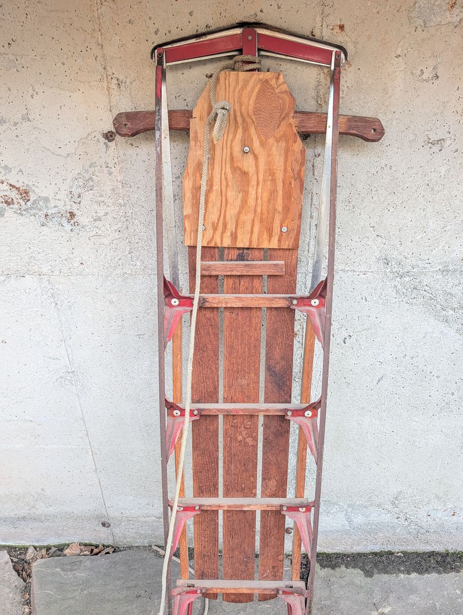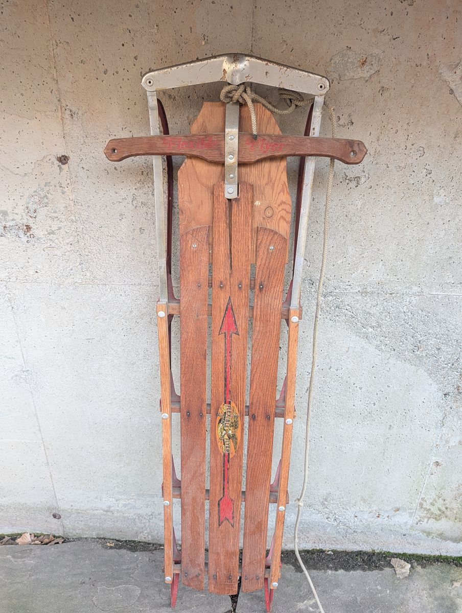 PayPalClassic mid-century Flexible Flyer sled. All original wood and metal runners. The eagle logo is in great condition. Perfect for a Christmas or holiday decoration on a front porch, hanging on a wall, or for a rustic farmhouse look.