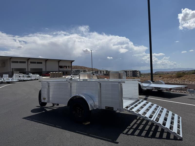 Stock #: PT5031 Model Weight 5x10-SA-26HSS 560 lbs. Axle: 1-3500 lbs. Rubber Torsion Axles - Easy lube hubs Aluminum Tubing Square: 3â³ x 3" 1/6â³ Radius Corners Brake: NO Coupler Rating: 2â³ 3500 lbs. Estimated Dry Weight: 560 lbs. Extruded Aluminum Flooring: Yes Fold-Up Trailer Jack: 750 lbs. Rated Wheel Jack Side Rail Height: 18â³ GVWR: 2990 lbs. L.E.D. Lighting System: DOT & SAE Compliance Rims: Aluminum 4 Recessed Tie Rings: 2 per each side Stainless Safety Chains: 24â³ Stainless Steel Hardware: Yes Tires: ST205/75 R15/5 Lug Chrome Wheels: Aluminum Black Wheels Optional Upon Request: - Spare Tire Mount\