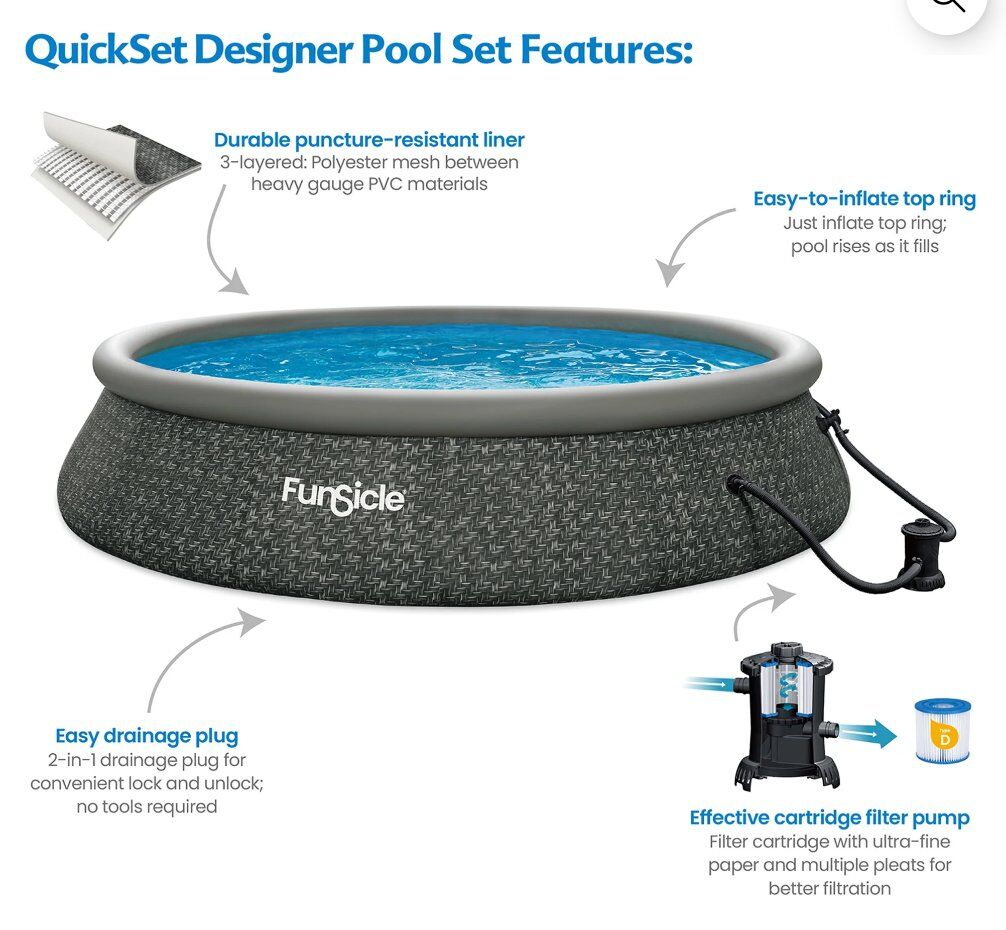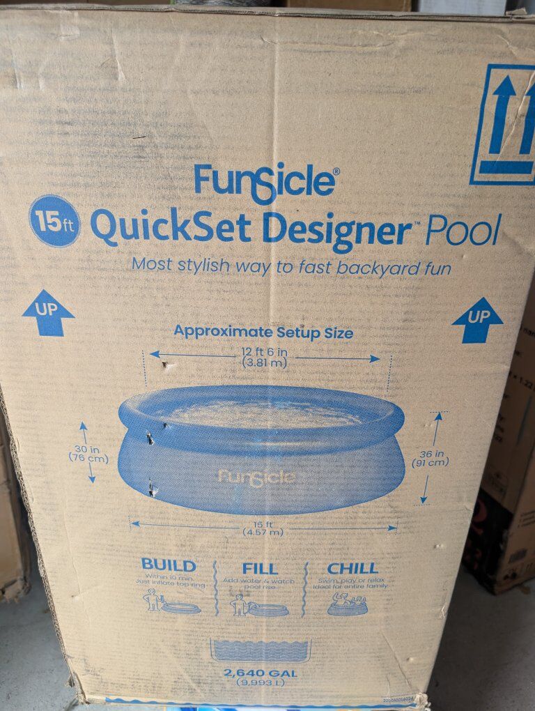 VenmoBrand new Funsicle 15ft by 36in round inflatable quickset designer pool with pump and filter. Retails for over $200. Asking $105. Text if interested 801-903-8337