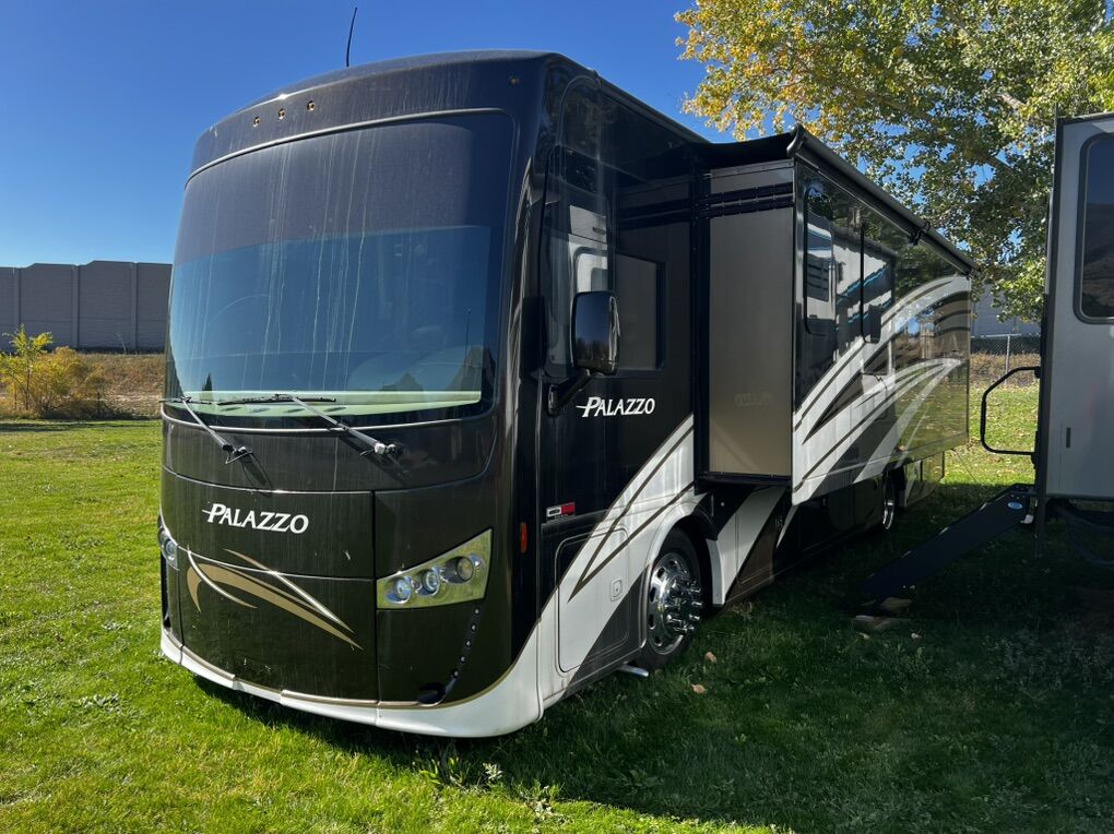 Zelle2017 THOR PALAZZO 33.2 with only 18190 miles! The 2017 Thor Palazzo 33.2 is a Class A diesel motorhome built on a Freightliner XC-S chassis with a 300HP Cummins ISB engine. Key specifications include a length of 34' 9, 2 slideouts, and sleeping for up to 6-8 people. It has a fresh water capacity of 95 gallons and includes features like a 35,000 BTU furnace, Onan 6.0 KW diesel generator, and a residential refrigerator, separate master suite, overhead full size bed, fold down dinette, back up camera, blind spot cameras, 2000 watt inverter, 40 LED TV, 28 LED bedroom TV, 32 exterior LED TV, automatic leveling jacks, 26000 GVWR and much more! CARFAX CERTIFIEDFINANCING AVAILABLE Contact our Sales at 801-265-9058