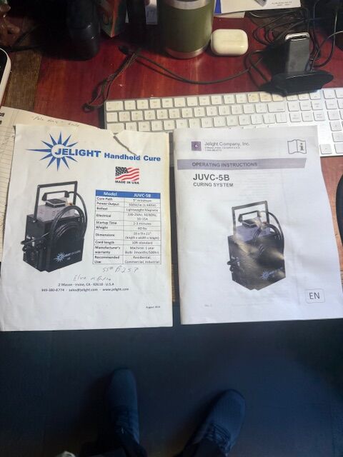 VenmoProfessioinal UV curing system with power supply and irradiator for curing UV finishes for floor or furniture. Used less than 8 times, total time less than 60 minutes. extra UV bulb included along with sign, face mask, and full instructions. Over $4,000 new