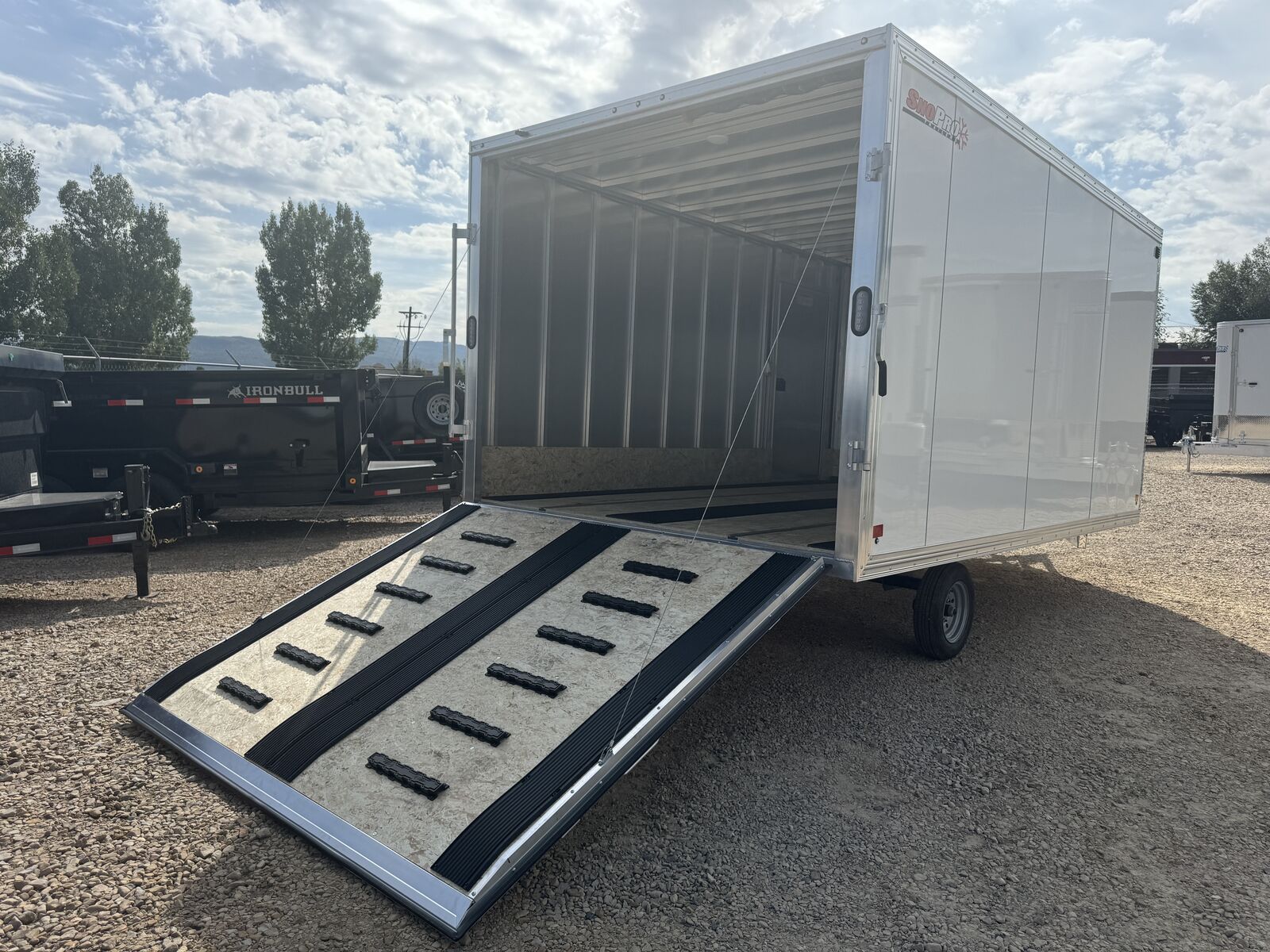 Go dashing through the snow with all-aluminum, deckover, V-nose construction, side door & spring-assist rear ramp.
