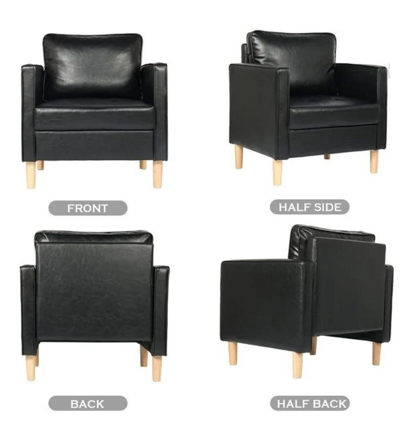 Faux Leather Accent Arm Chair Upholstered Comfy Single Sofa Chair Black