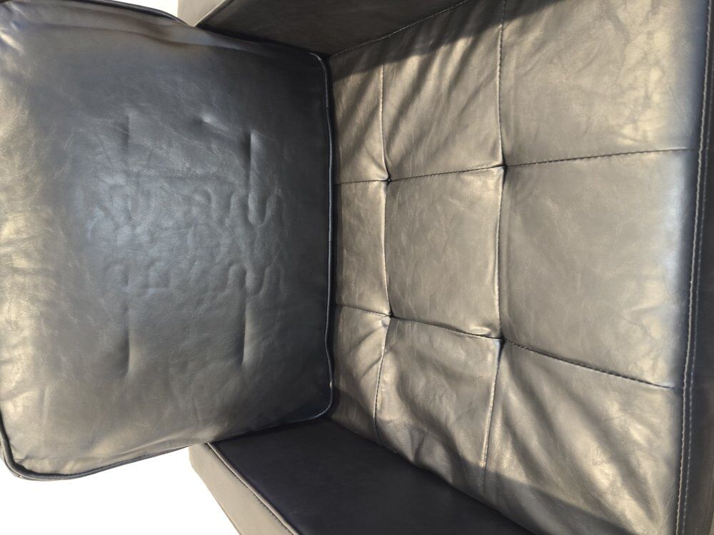 This accent sofa chair is the perfect addition to any room, offering both style and comfort. It features a sleek and elegant design that instantly enhances the aesthetic appeal of your living space. The single sofa is upholstered with high-quality faux leather, which not only adds a luxurious touch but also ensures durability and easy maintenance. With its plush seat and supportive armrests, this comfy single sofa chair provides a cozy spot to relax after a long day. The sleek black color effortlessly blends into any decor, adding a modern touch to your home. Whether you have a small apartment or an office space, this compact chair is ideal as it provides ample seating without taking up too much space. Upgrade your seating experience with our faux leather accent chair.