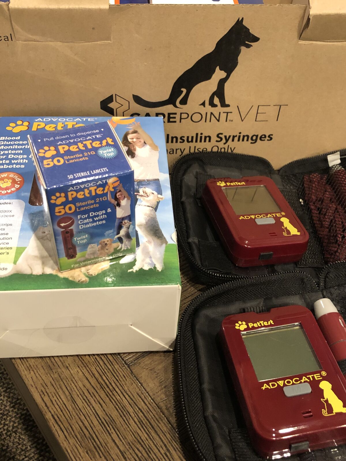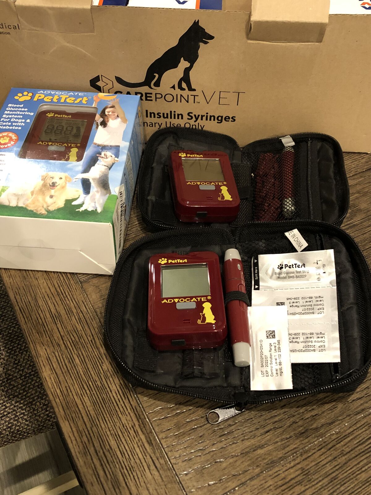 For those that require insulin for your pet dog or cat, this is a fantastic value. There are over 900 NEW syringes. Also included are new and used meters and accessories. Everything in excellent condition.