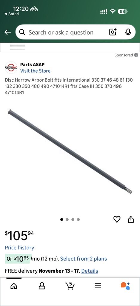 Disc Harrow Arbor Bolt fits International 330 37 46 48 61 130 132 330 350 480 490 471014R1 fits Case IH 350 370 496 471014R1