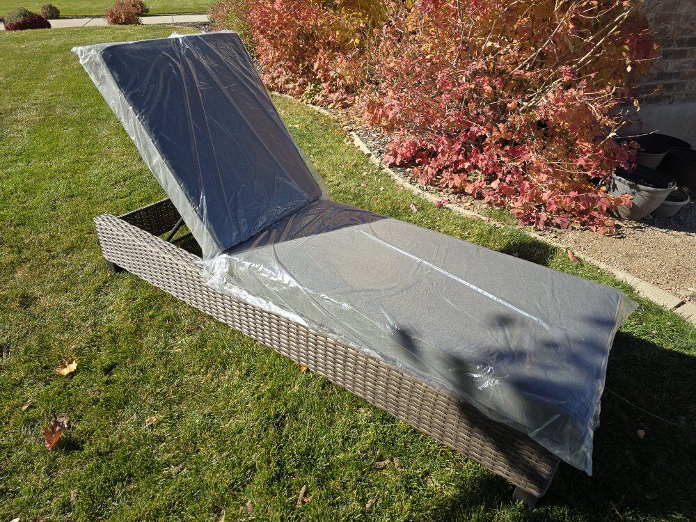 VenmoDeck or patio adjustable lounger. 300lb capacity. Brand new cushions still in packaging. It's not too late to sit outside and soak up some sun. Originally $300.