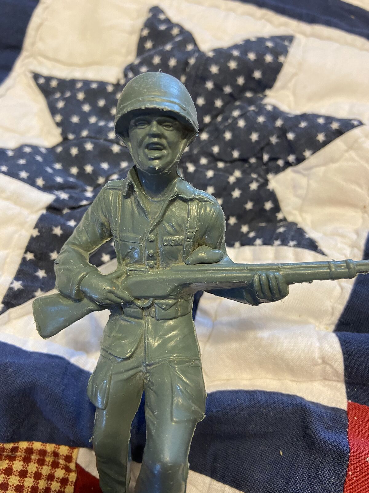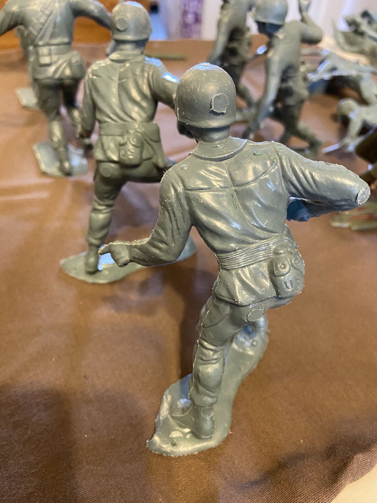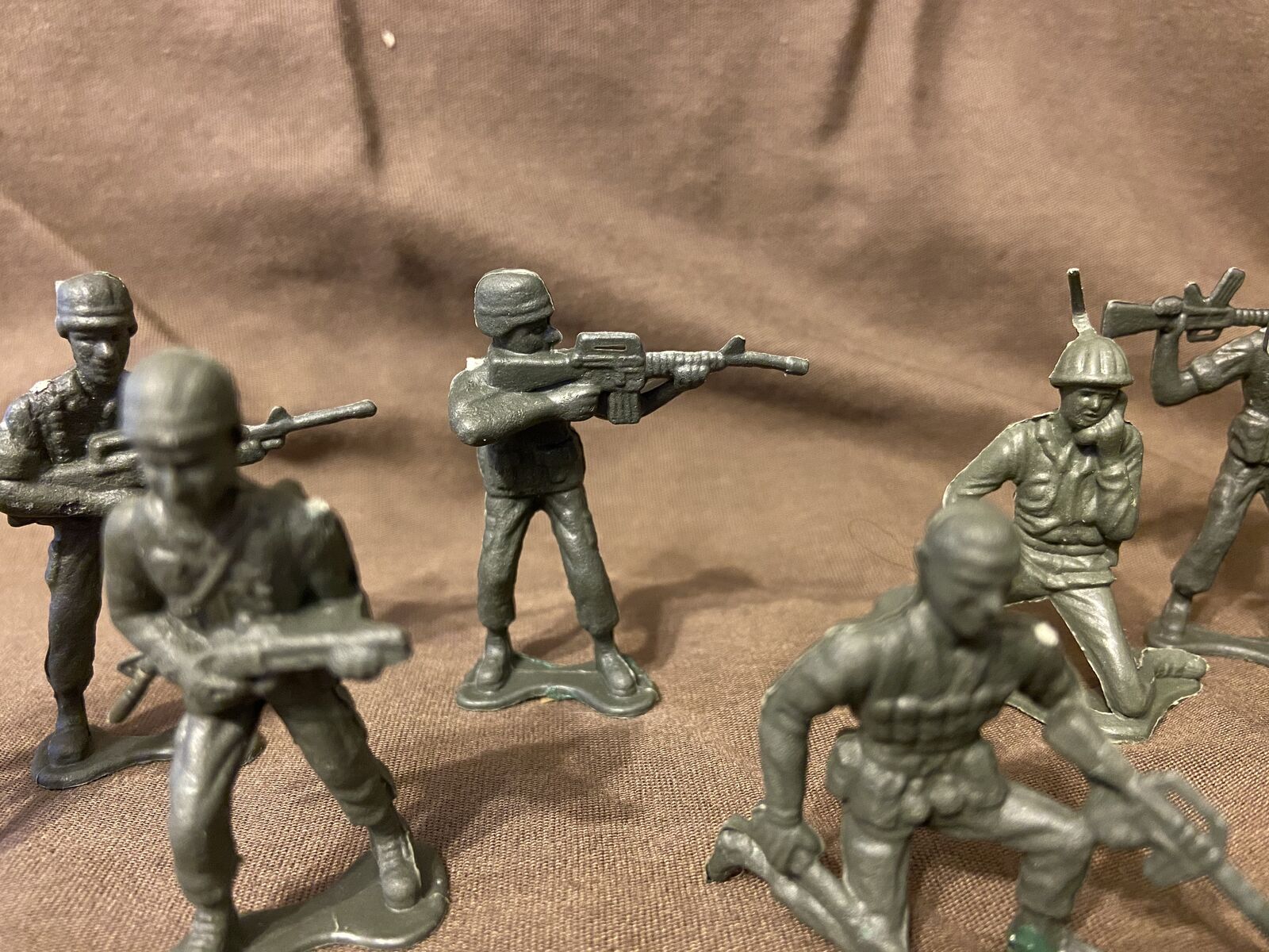 Venmo6 Unique Figures form this original plastic platoon by Marx Toys. Each figure has his own unique espression and pose. Uniforms are incredibly detailed right down to the USMC at the topo of their left chest pocket. Figures are 5" tall.
