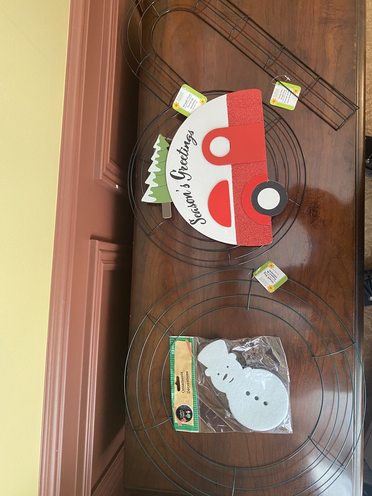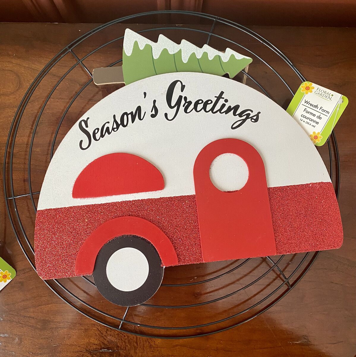 NEW- Crafters 16 PC Bundle- Large Circle Wreath and Candy Cane Wire Forms- 12 Snowmen- Large Trailer w/ Tree - C PIX. There's another smaller circle wreath. You will get all of these. The photos have more details.