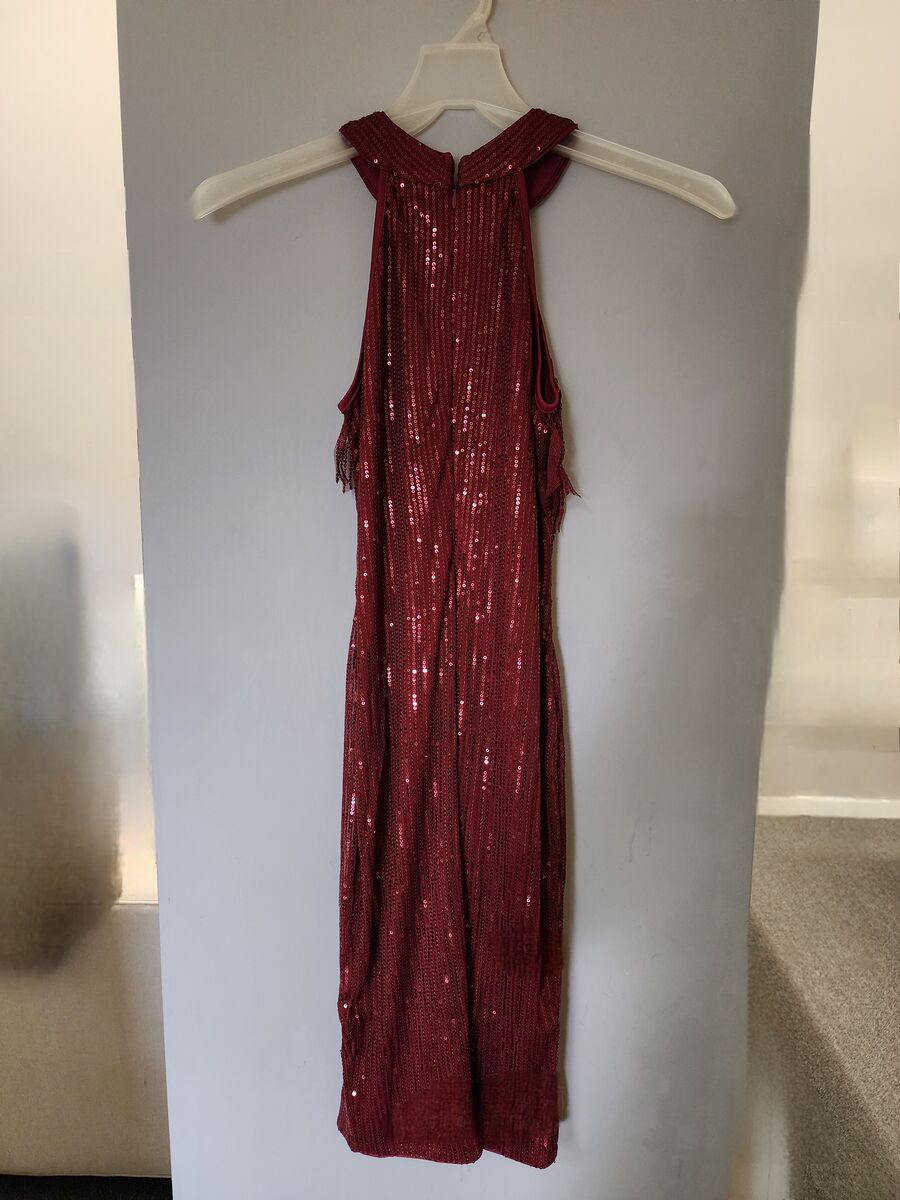 Sequined tassels halter neck sleeveless bodycon skirt. Size S. But it fits more like an XS. I usually wear S that's why I ordered the S but it doesn't fit me. Brand new.