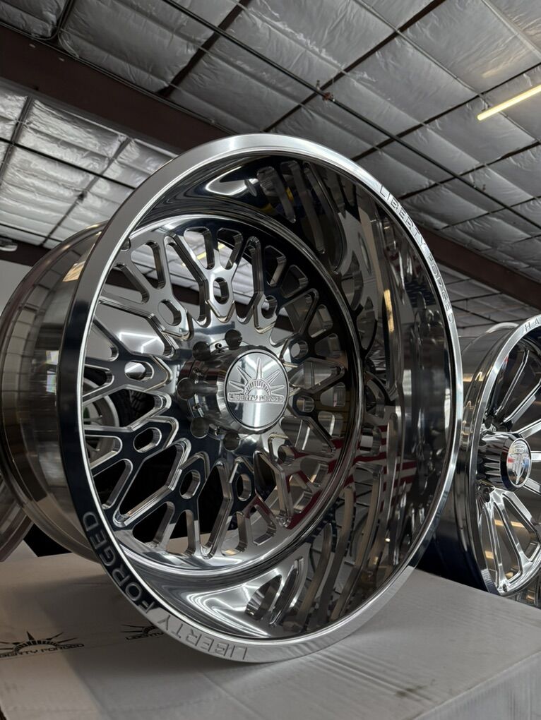 These are 24x14 liberty forged LBTY15, one of the hottest forged wheels on the market, very hard to get. These wheels are brand new in the box. Billet floating caps are also included.