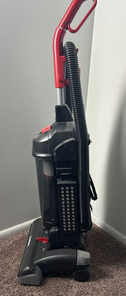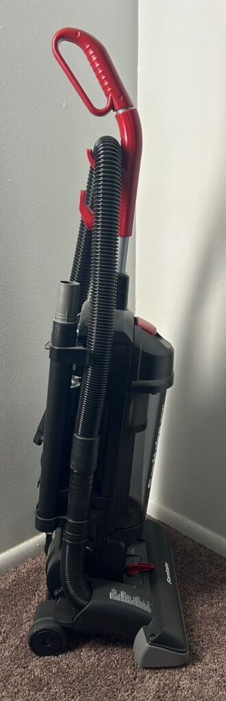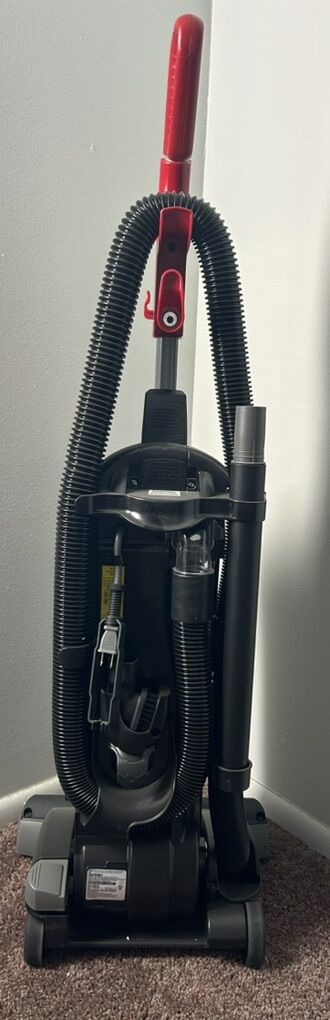 This is a commercial-grade, bagless upright vacuum cleaner with a 15-inch cleaning path. It features a washable, sealed HEPA filtration system that can capture 99.97% of particles down to 0.3 microns. It is designed for daytime cleaning with a low sound level and is LEED Qualified. The vacuum includes on-board tools such as a crevice tool and dusting brush, as well as a stretch hose for above-the-floor cleaning.